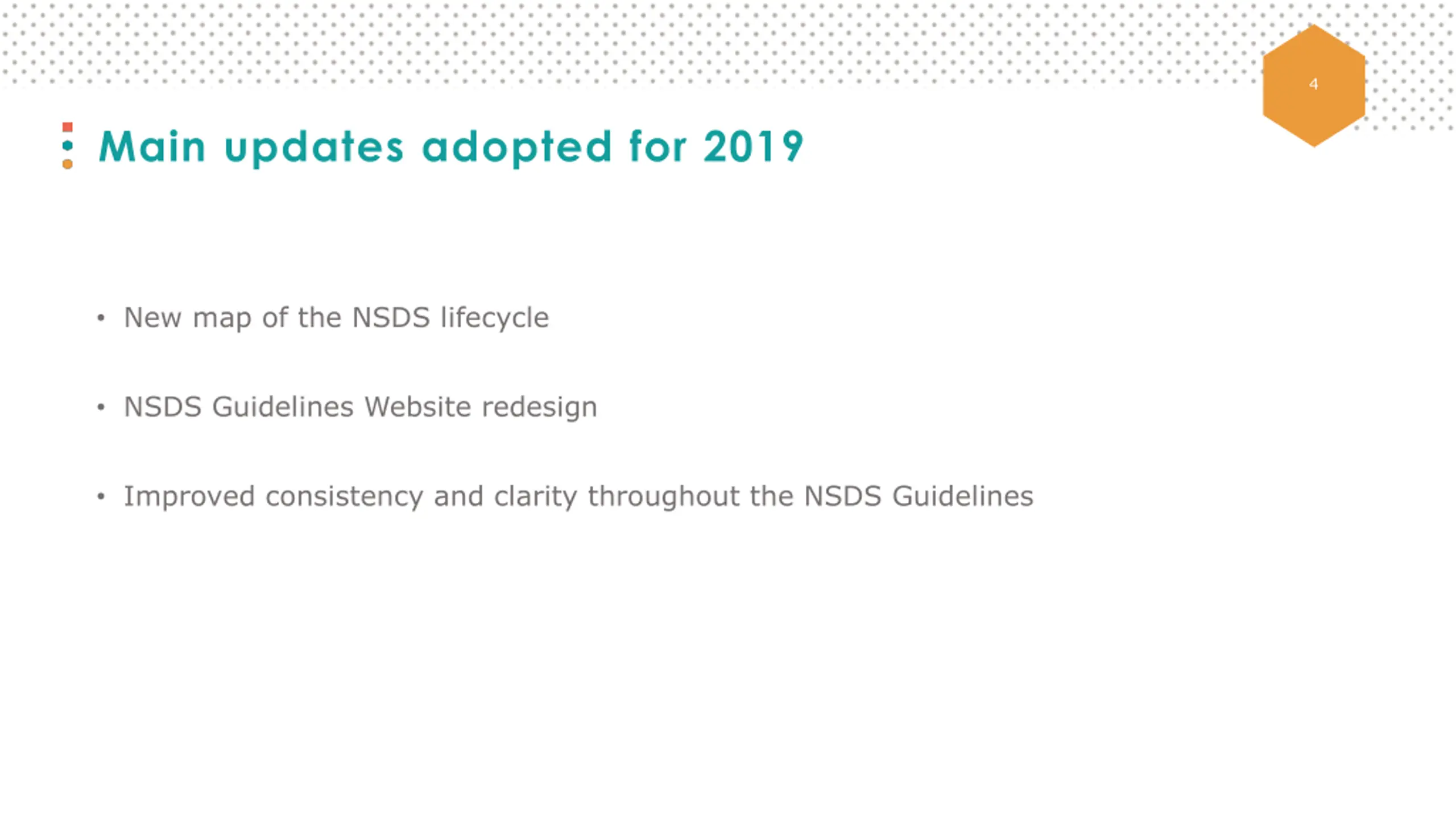 4 Main updates adopted for 2019 New map of the NSDS lifecycle NSDS Guidelines Website redesign Improved consistency and clarity throughout the NSDS Guidelines