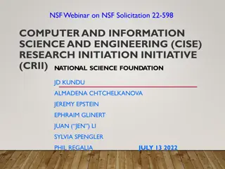 ERC Solicitation 15-589 Webinar Guidance for Preliminary Proposal Development Aug 31, 2015 10:00 AM EDT Engineering Research Centers Program Division of Engineering Education and Centers Engineering Directorate, NSF 1