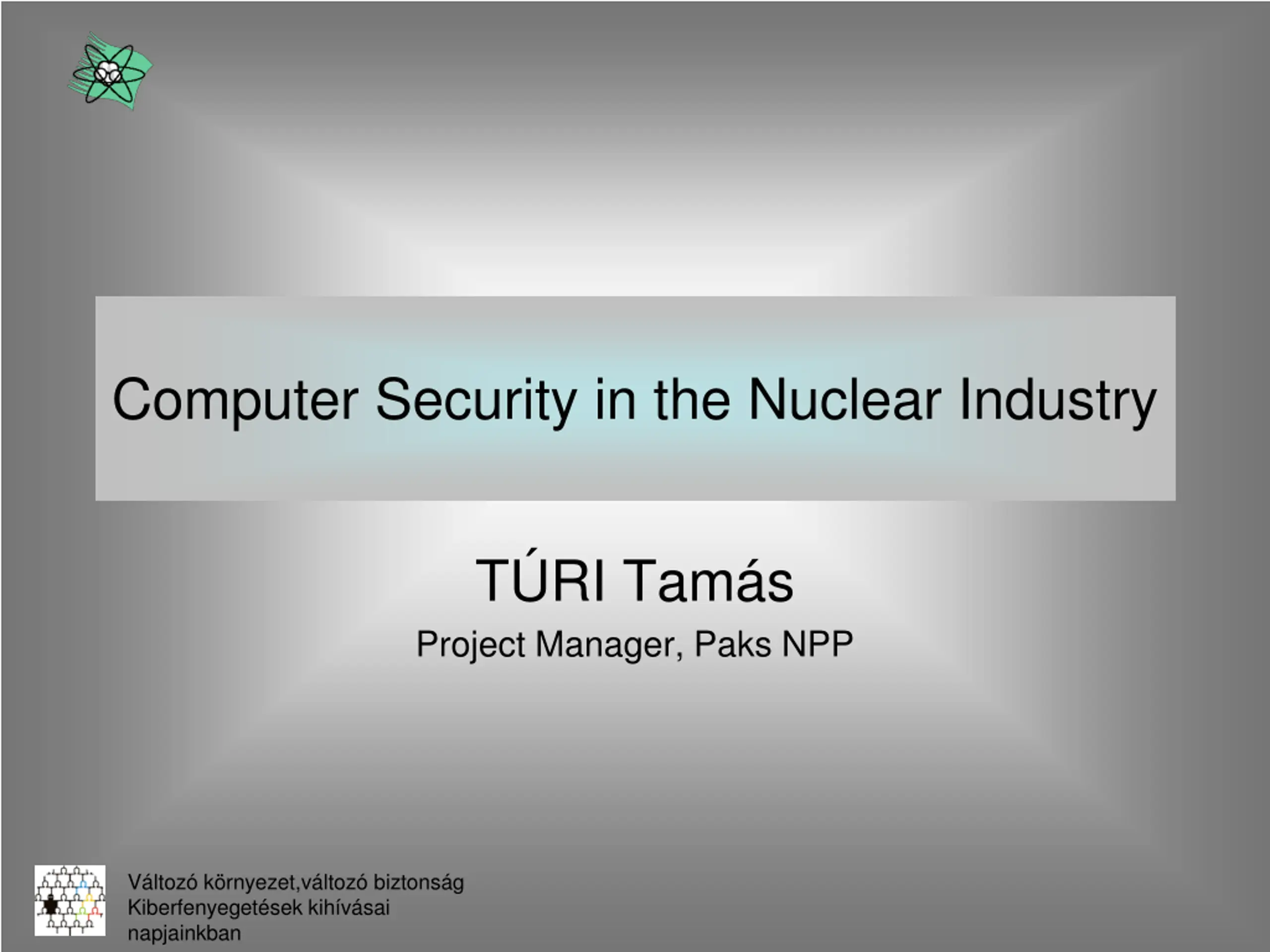 Computer Security in the Nuclear Industry T RI Tam s Project Manager, Paks NPP V ltoz k rnyezet,v ltoz biztons g Kiberfenyeget sek kih v sai napjainkban