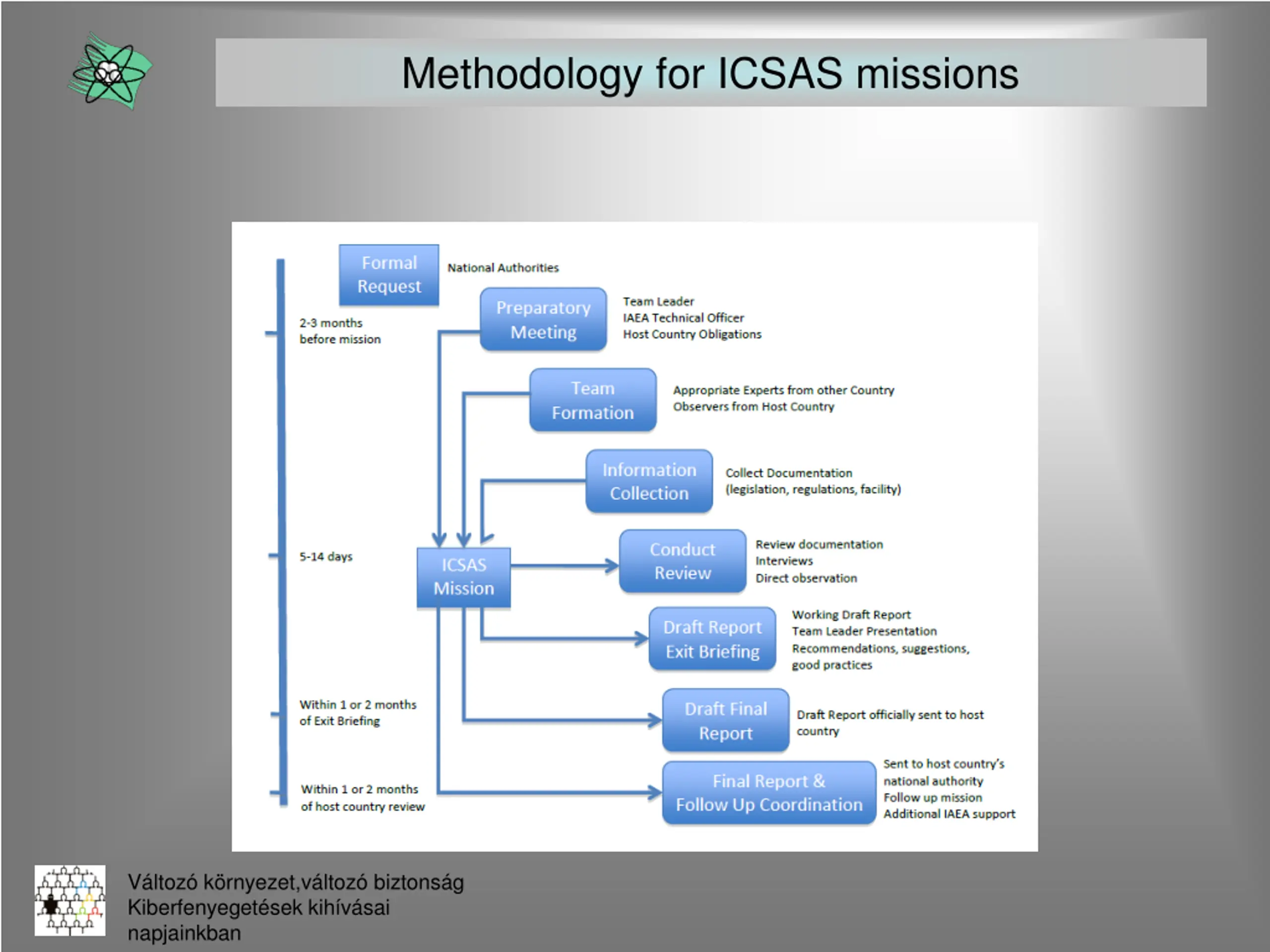 IAEA services supporting safety and security OSART Operational Safety Review Team (OSART) Services IPPAS International Physical Protection Advisory Service ICSAS International Computer Security Advisory Service V ltoz k rnyezet,v ltoz biztons g Kiberfenyeget sek kih v sai napjainkban