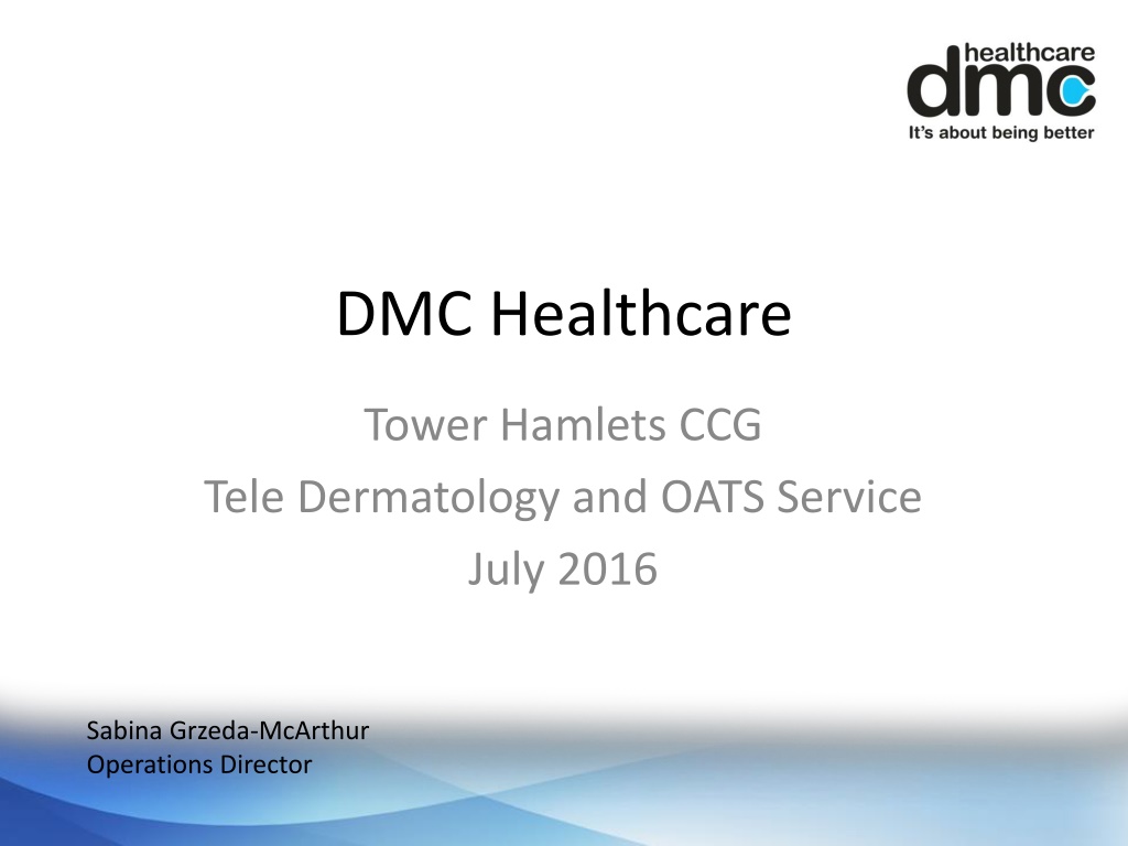 DMC Healthcare Tower Hamlets CCG Tele Dermatology and OATS Service July 2016 Sabina Grzeda-McArthur Operations Director 1