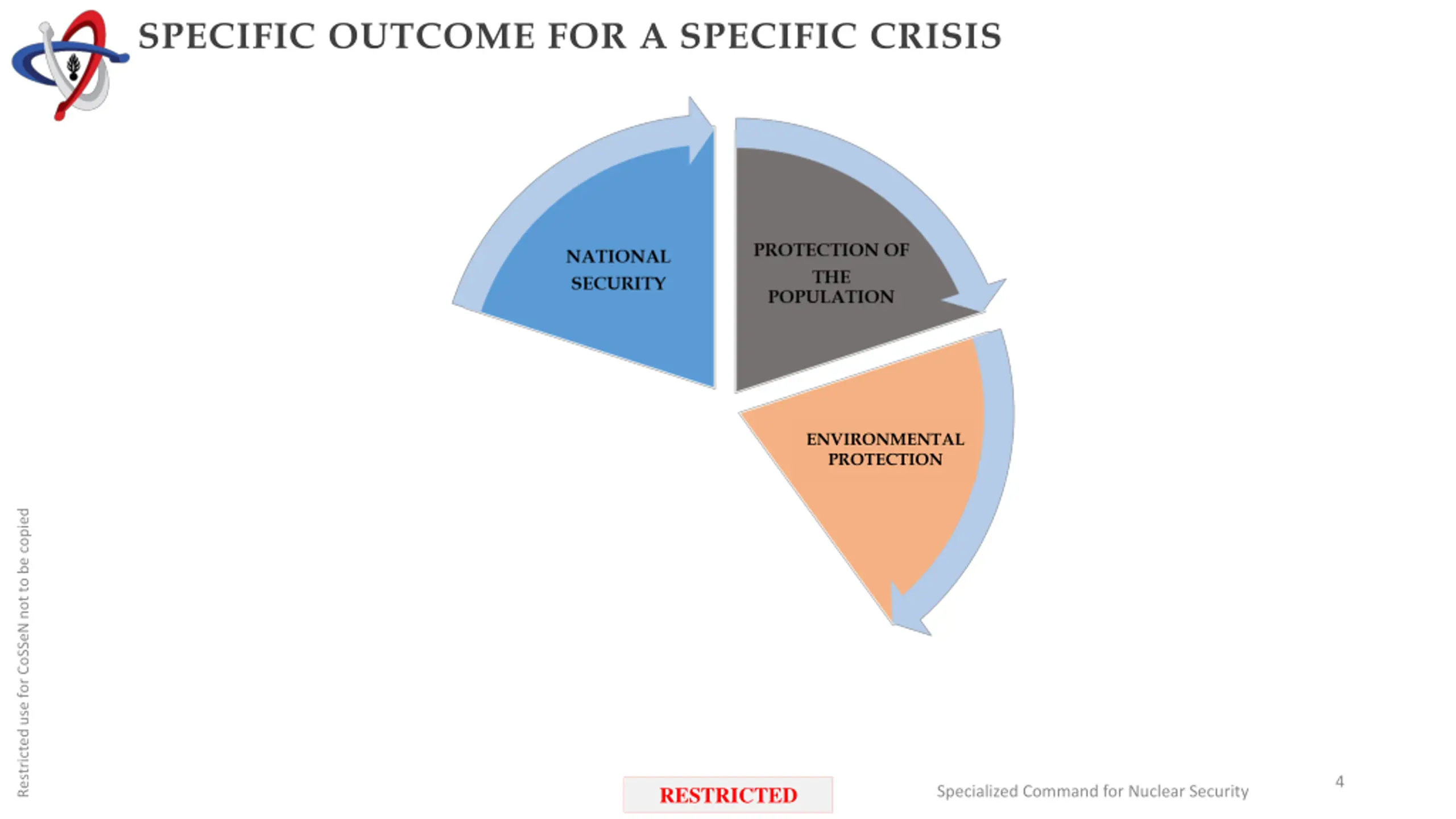 SPECIFIC OUTCOME FOR A SPECIFIC CRISIS Restricted use for CoSSeN not to be copied 3 RESTRICTED Specialized Command for Nuclear Security