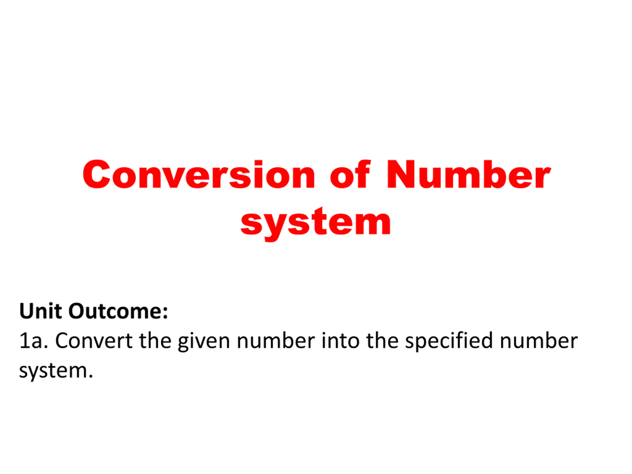 Conversion of Number system Unit Outcome: 1a. Convert the given number into the specified number system.