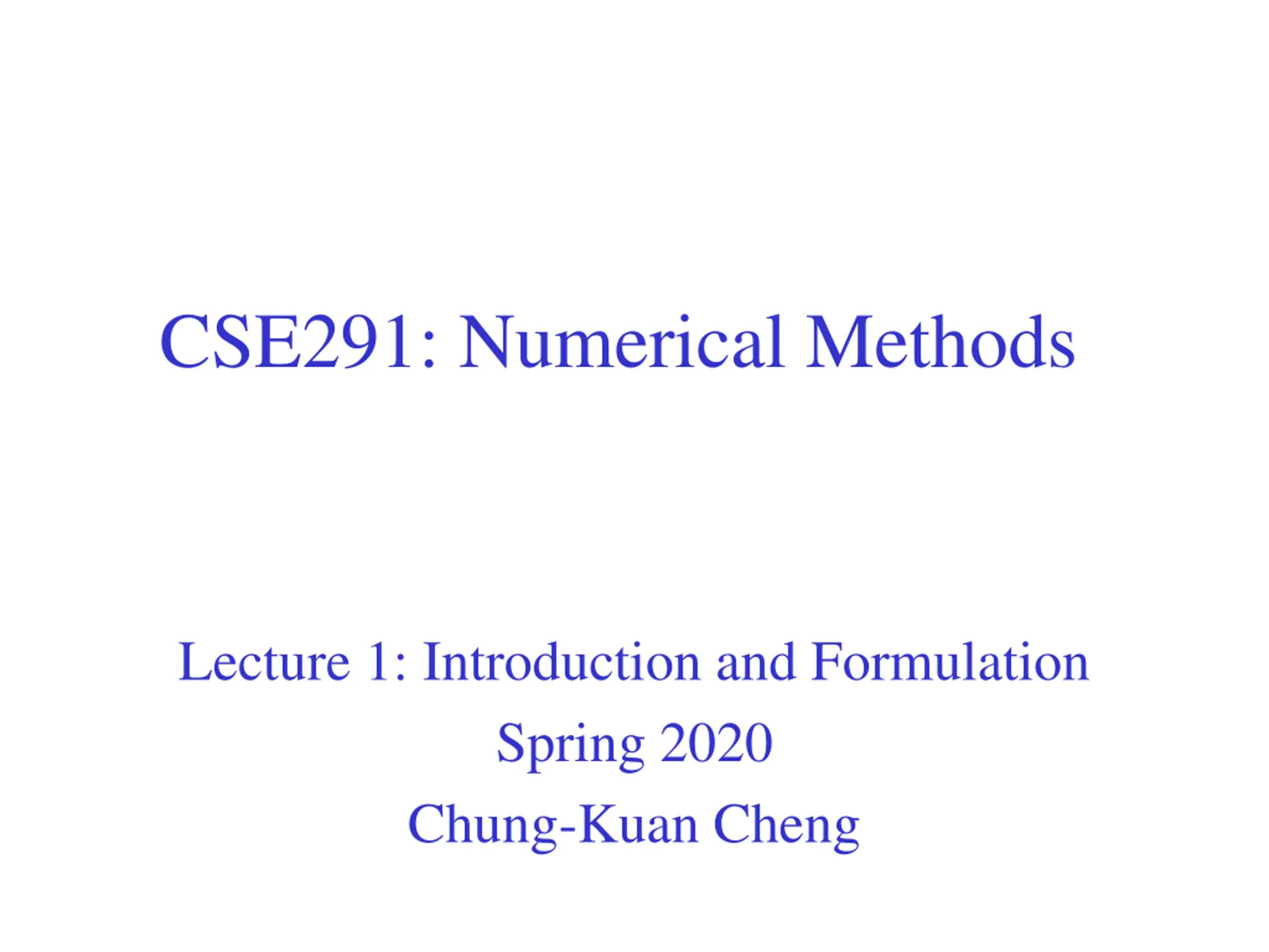 CSE291: Numerical Methods Lecture 1: Introduction and Formulation Spring 2020 Chung-Kuan Cheng