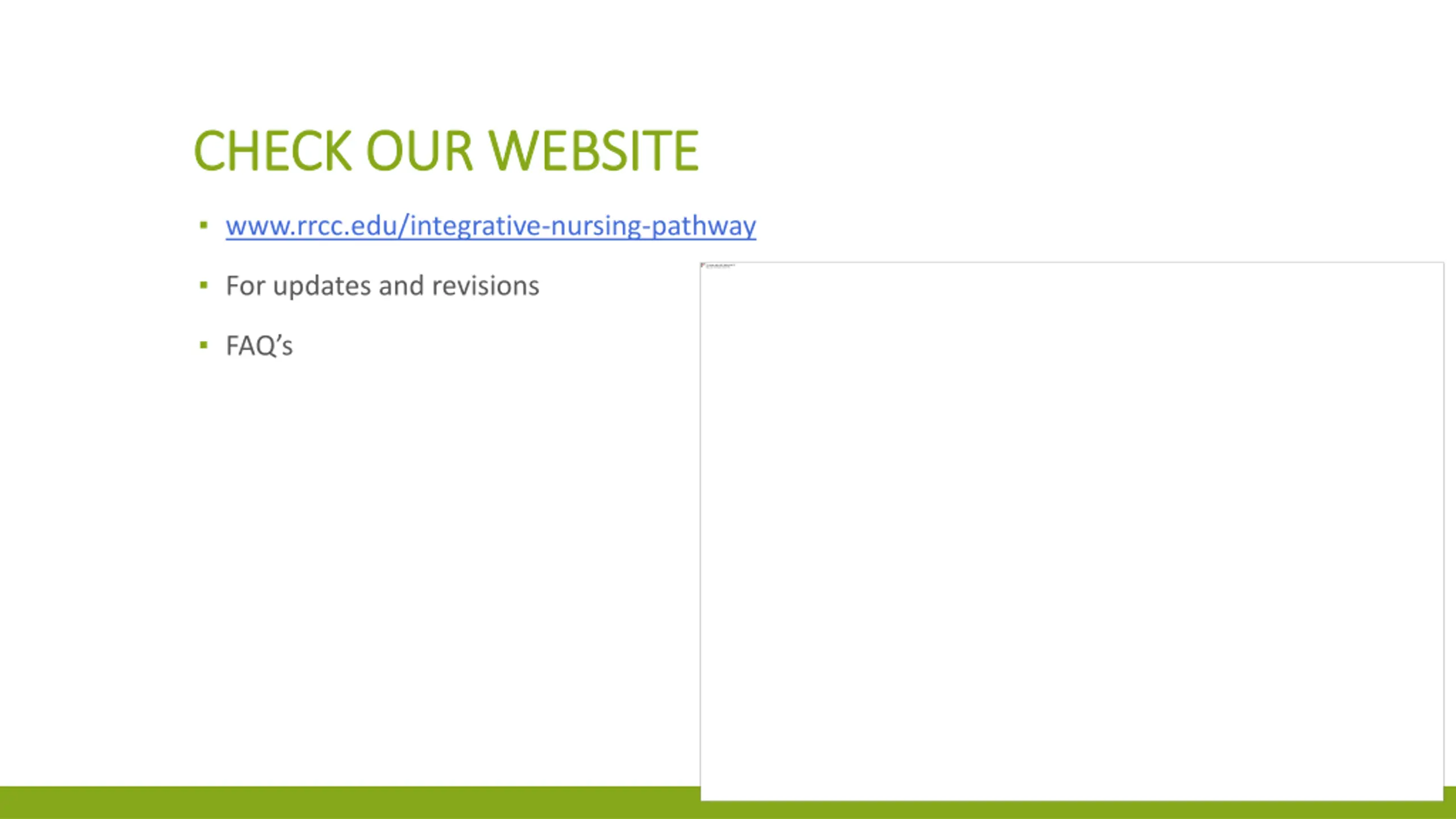CHECK OUR WEBSITE CHECK OUR WEBSITE www.rrcc.edu/integrative-nursing-pathway For updates and revisions FAQ s
