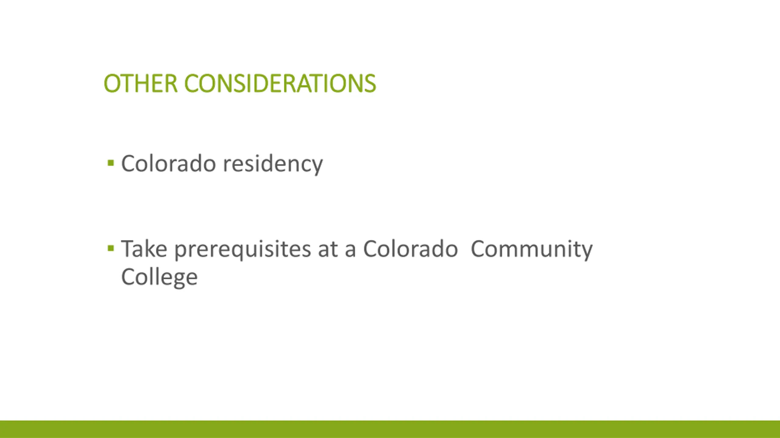 OTHER CONSIDERATIONS OTHER CONSIDERATIONS Colorado residency Take prerequisites at a Colorado Community College
