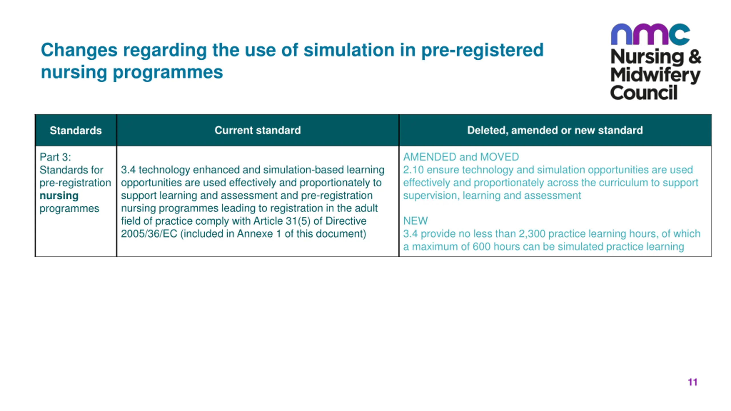 Changes regarding the use of simulation in standards for pre- registered nursing programmes 10