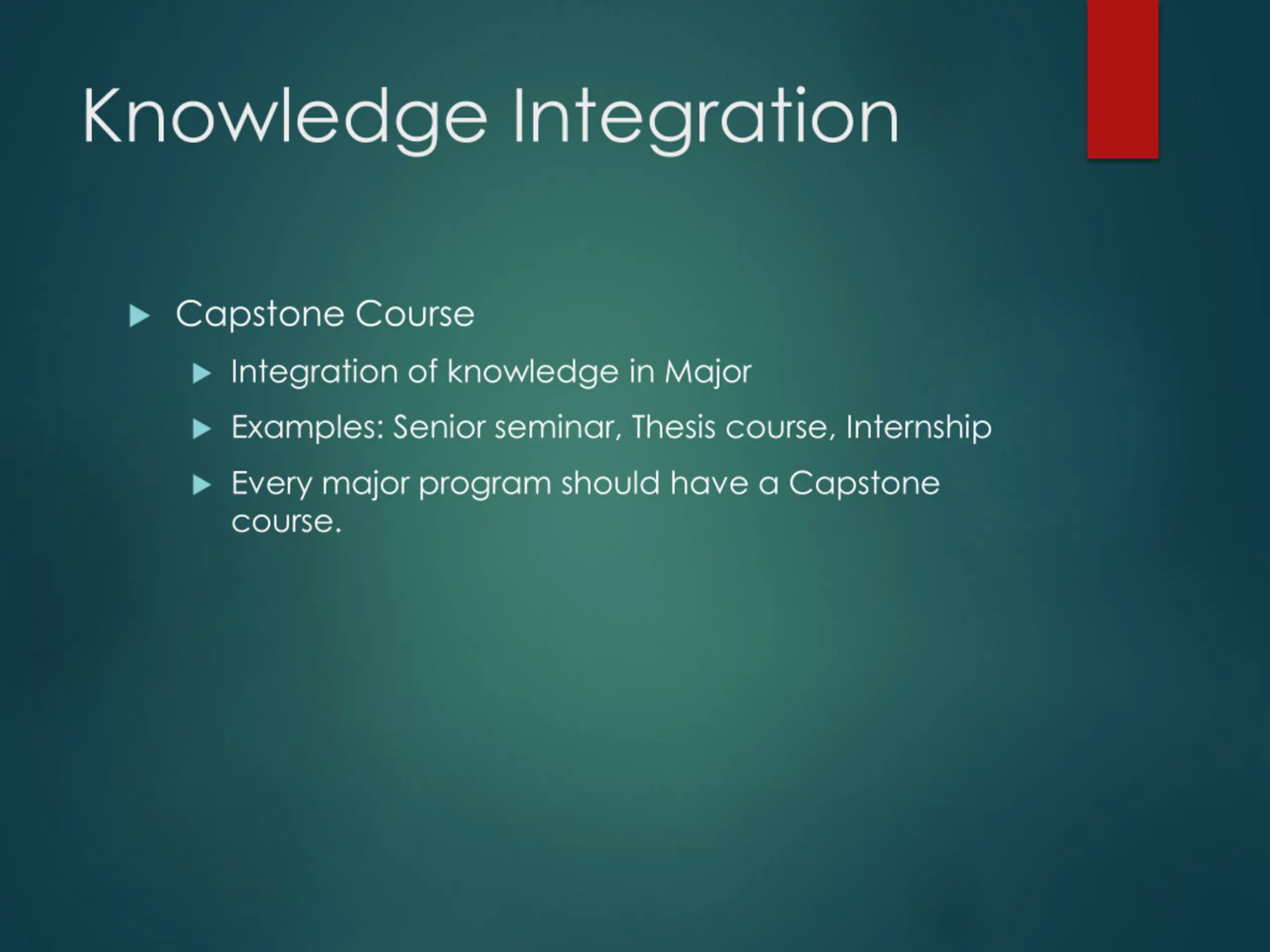 Knowledge Integration Capstone Course Integration of knowledge in Major Examples: Senior seminar, Thesis course, Internship Every major program should have a Capstone course.