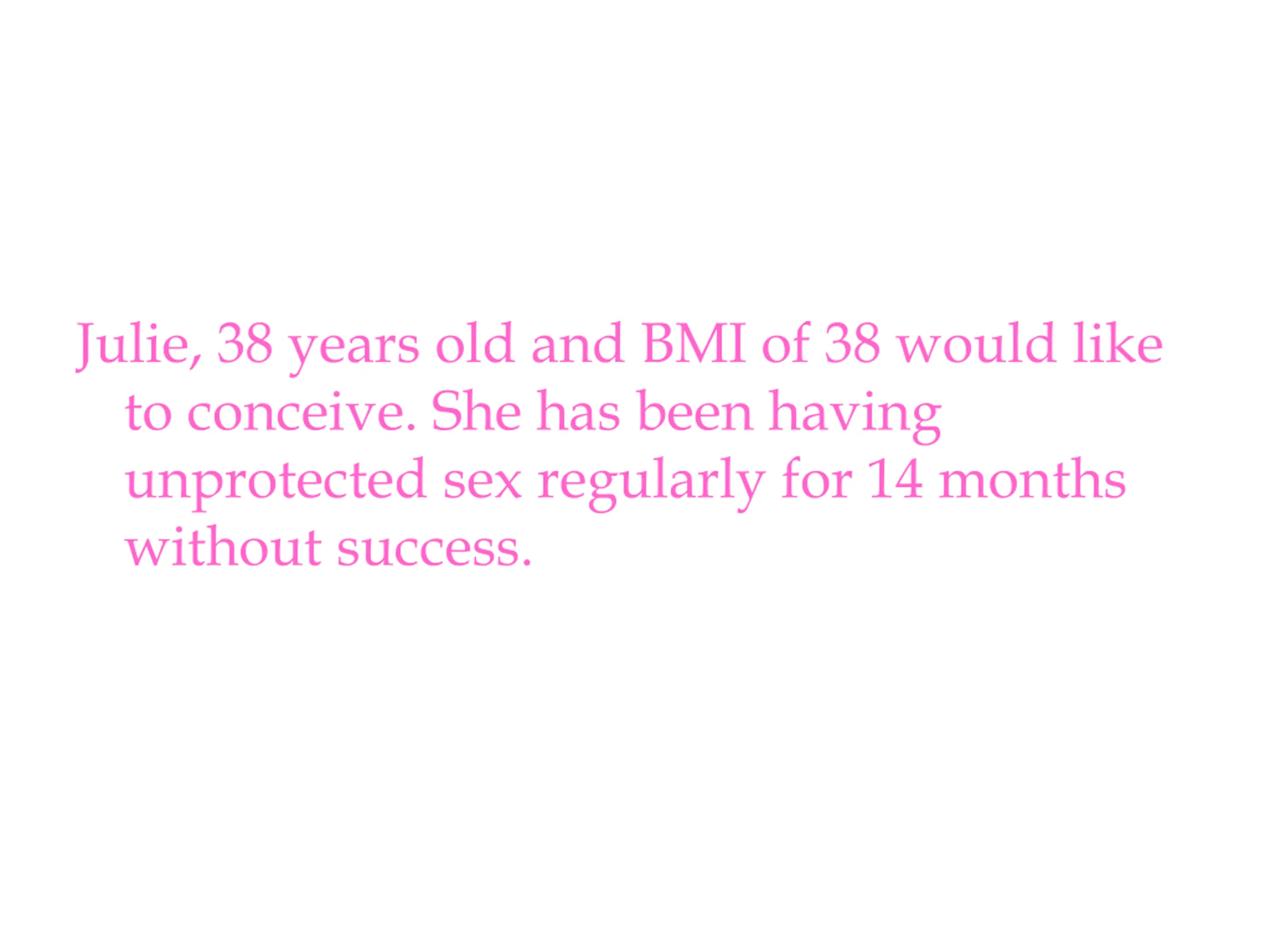 Julie, 38 years old and BMI of 38 would like to conceive. She has been having unprotected sex regularly for 14 months without success.