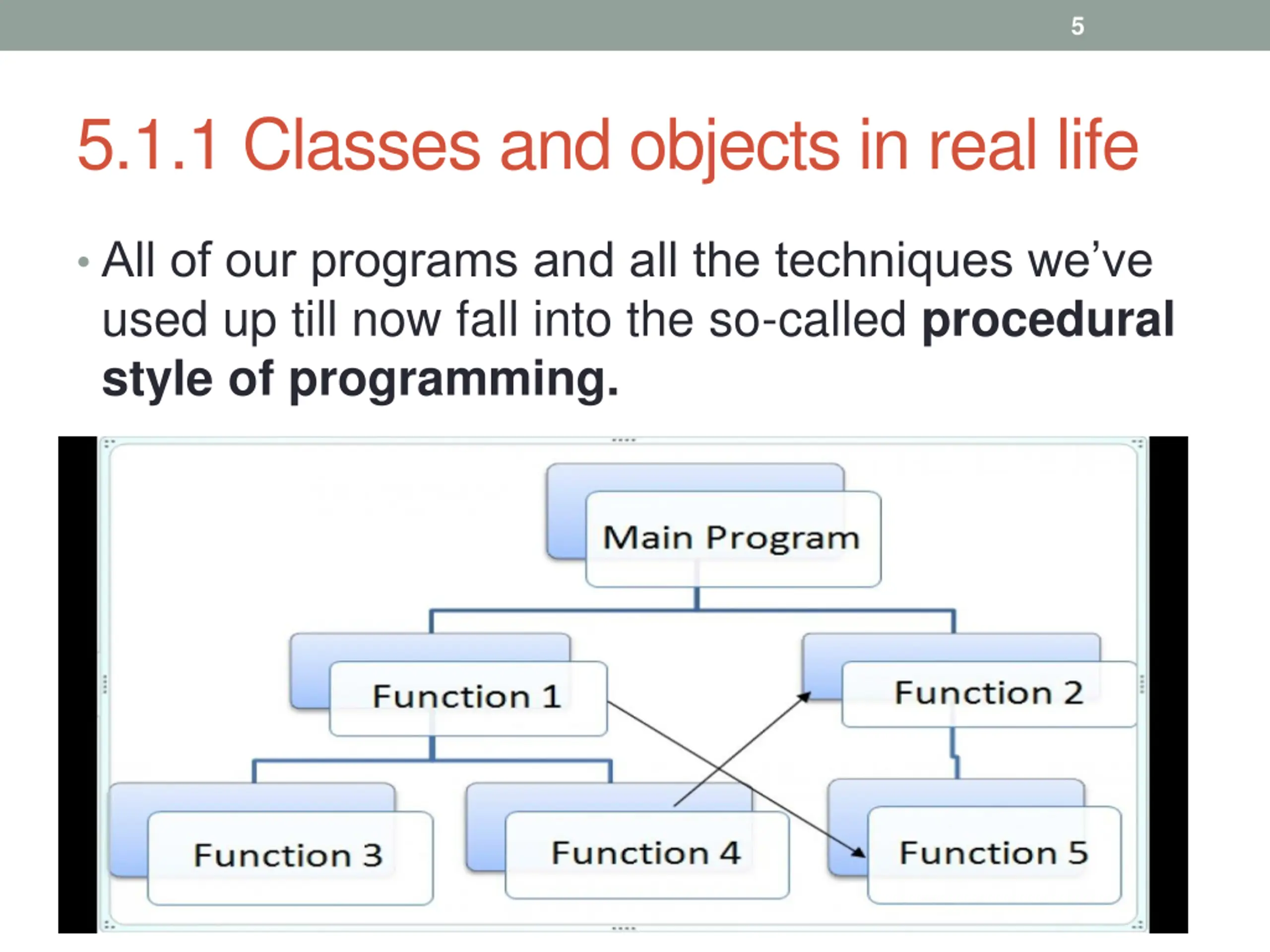 5 5.1.1 Classes and objects in real life All of our programs and all the techniques we ve used up till now fall into the so-called procedural style of programming.