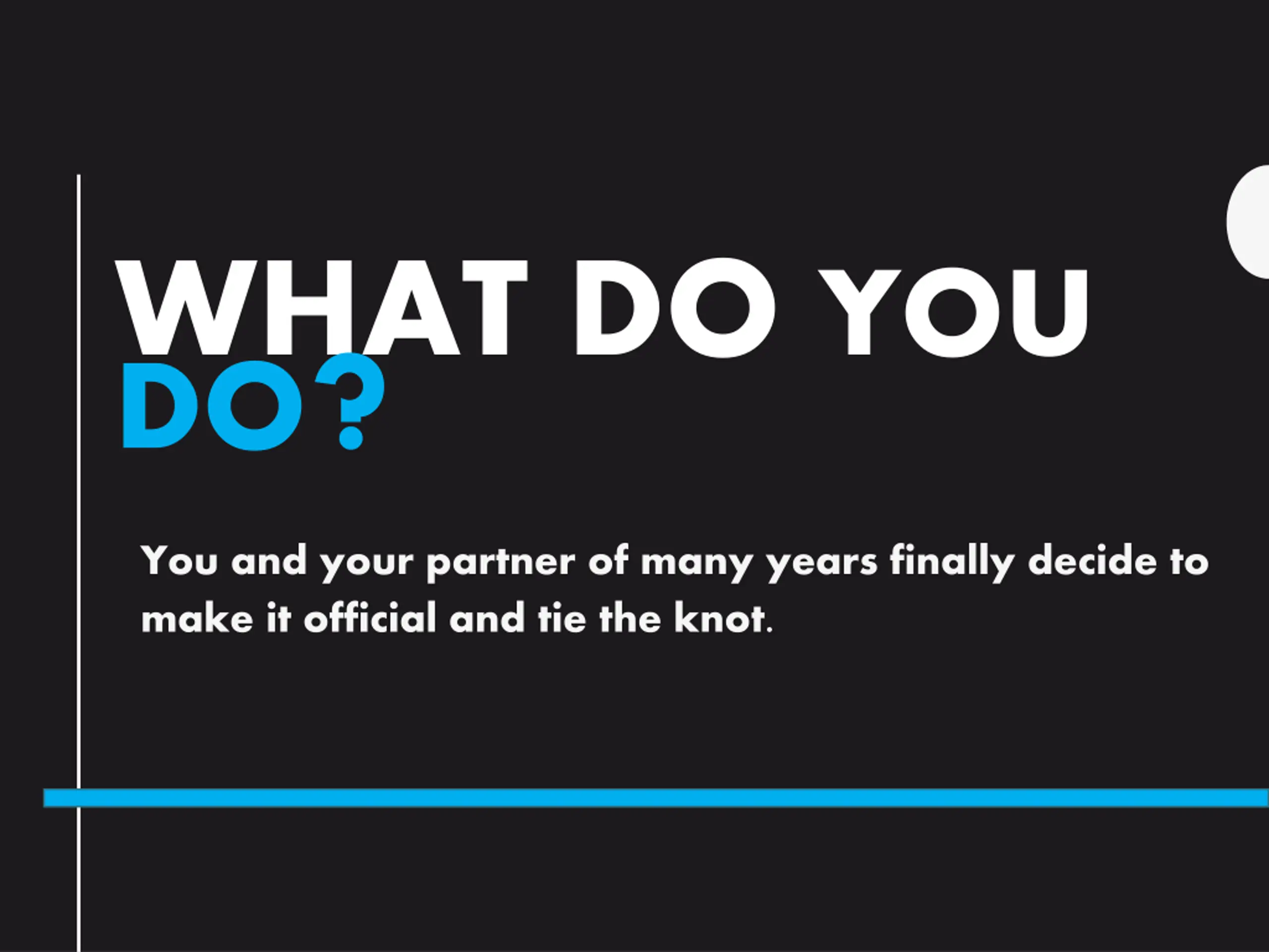 WHAT DO YOU DO? You and your partner of many years finally decide to make it official and tie the knot.