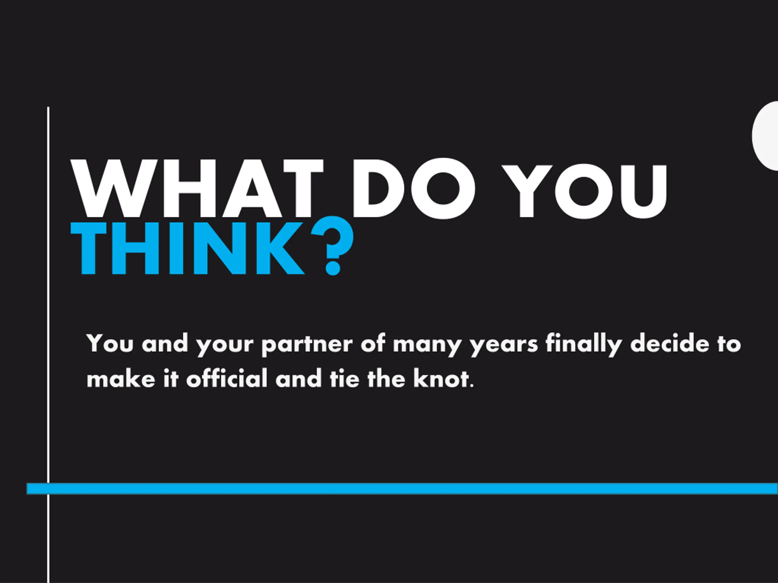 WHAT DO YOU THINK? You and your partner of many years finally decide to make it official and tie the knot.