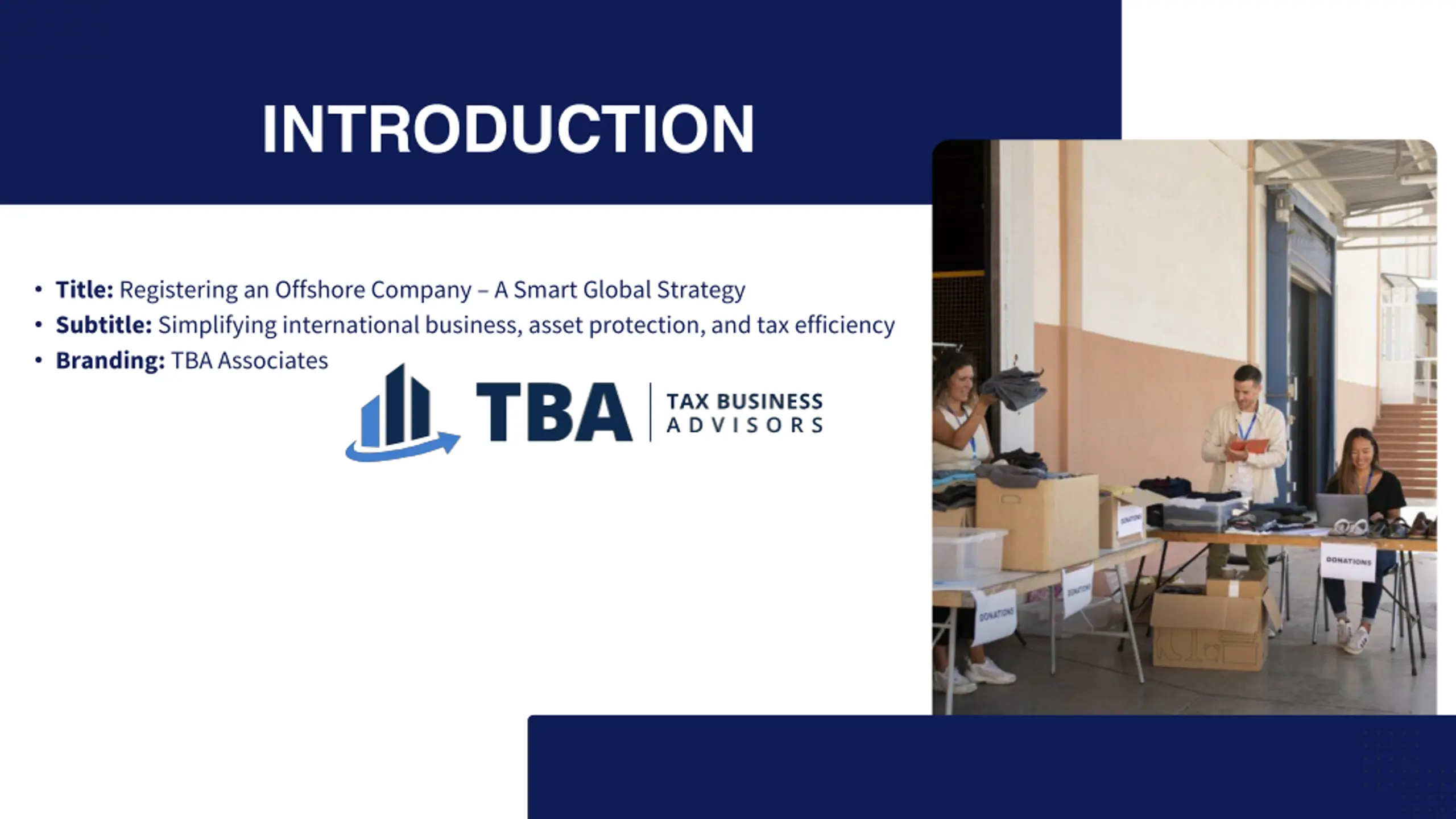 INTRODUCTION Title: Registering an Offshore Company A Smart Global Strategy Subtitle: Simplifying international business, asset protection, and tax efficiency Branding: TBA Associates