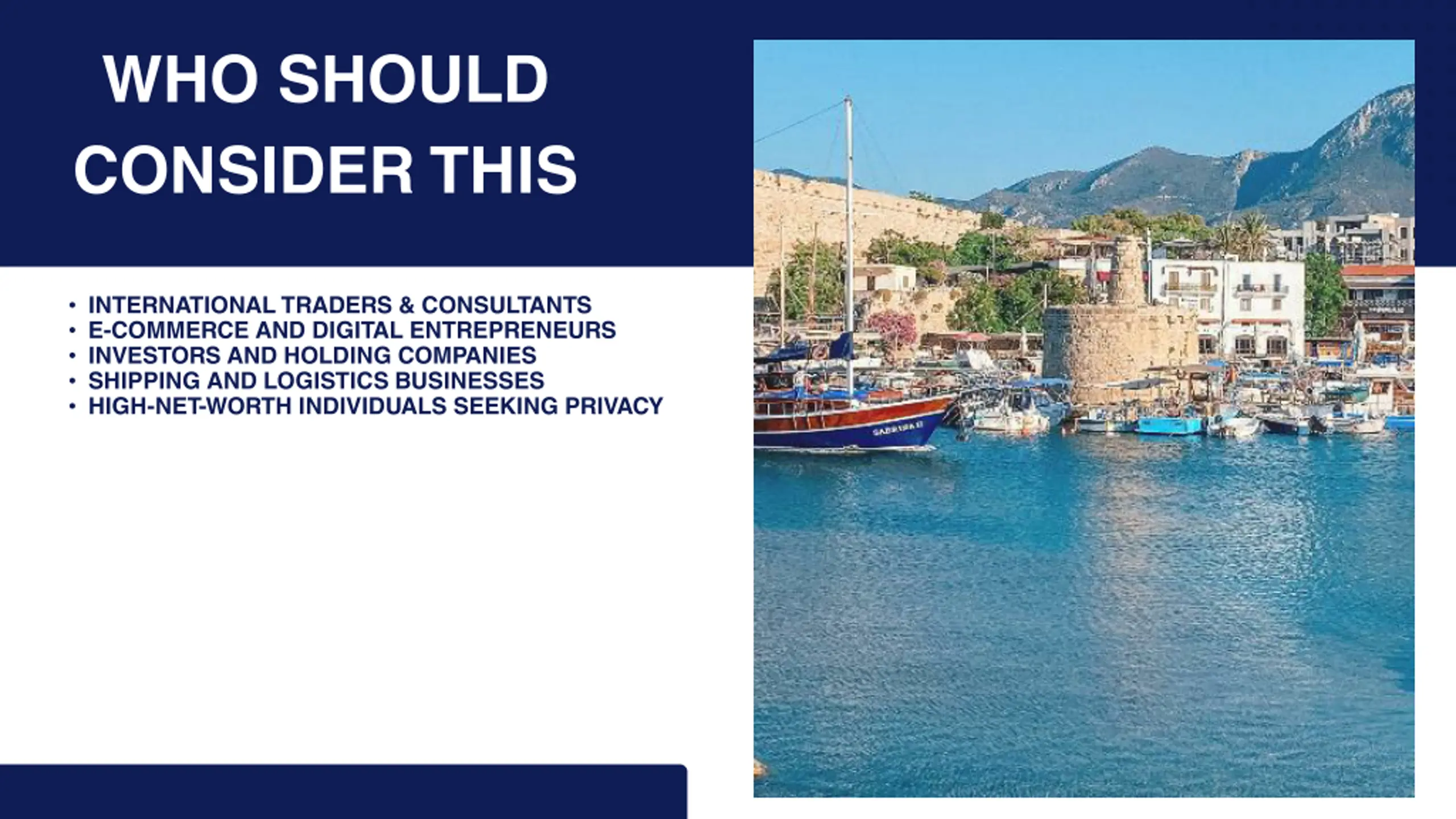 WHO SHOULD CONSIDER THIS INTERNATIONAL TRADERS & CONSULTANTS E-COMMERCE AND DIGITAL ENTREPRENEURS INVESTORS AND HOLDING COMPANIES SHIPPING AND LOGISTICS BUSINESSES HIGH-NET-WORTH INDIVIDUALS SEEKING PRIVACY