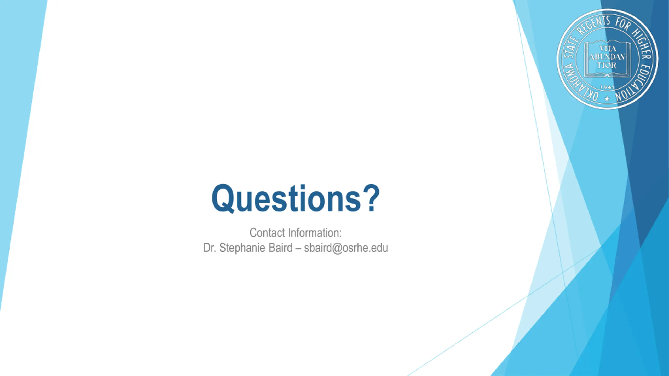 Questions? Contact Information: Dr. Stephanie Baird sbaird@osrhe.edu
