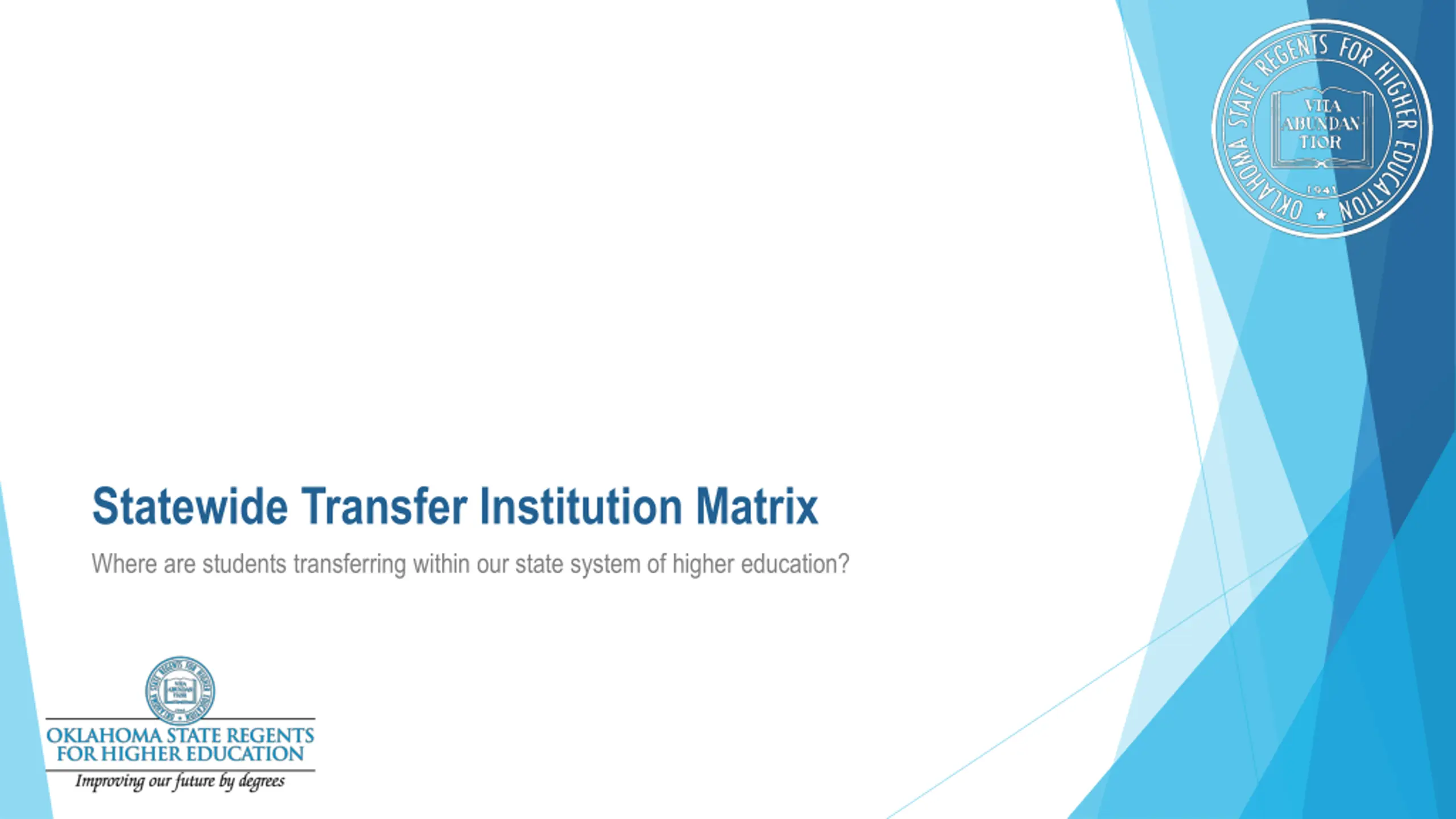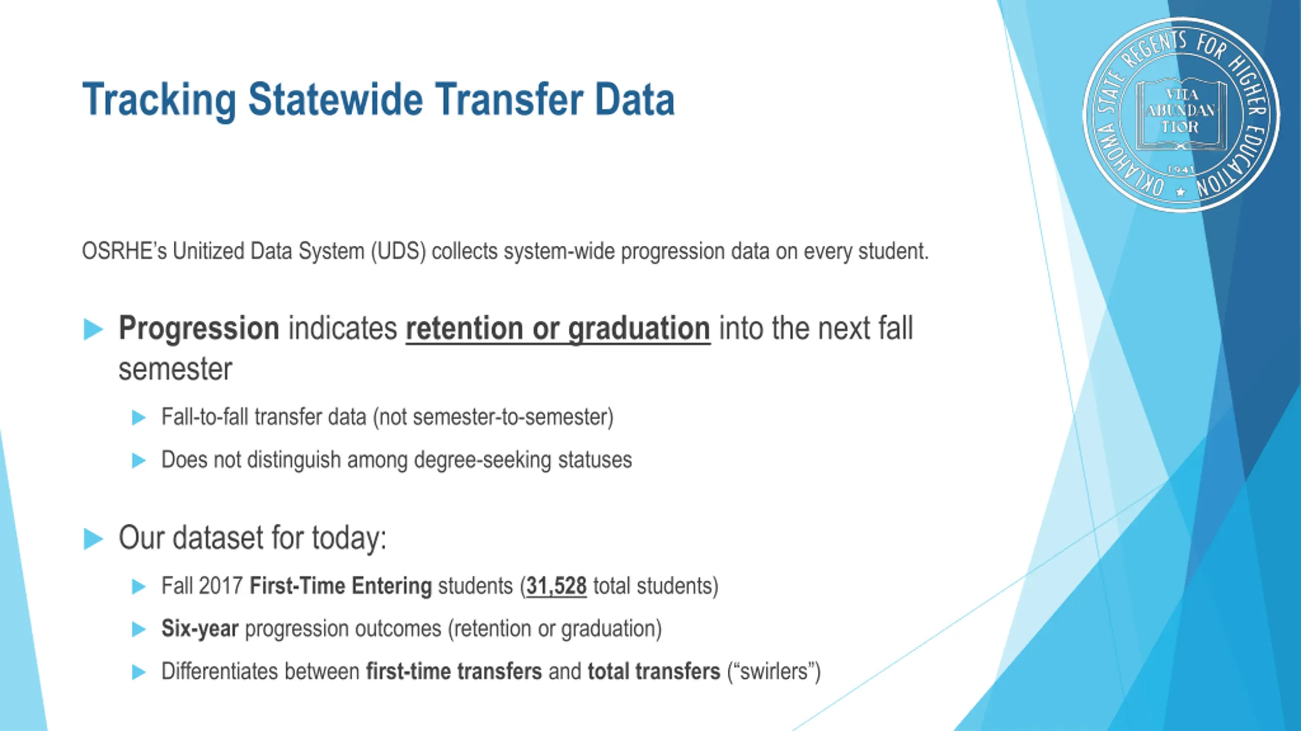 Oklahoma Transfer Student Progression at a Glance Presented by: Stephanie Baird, Ph.D. Associate Vice Chancellor for System Analysis and Reporting Oklahoma State Regents for Higher Education