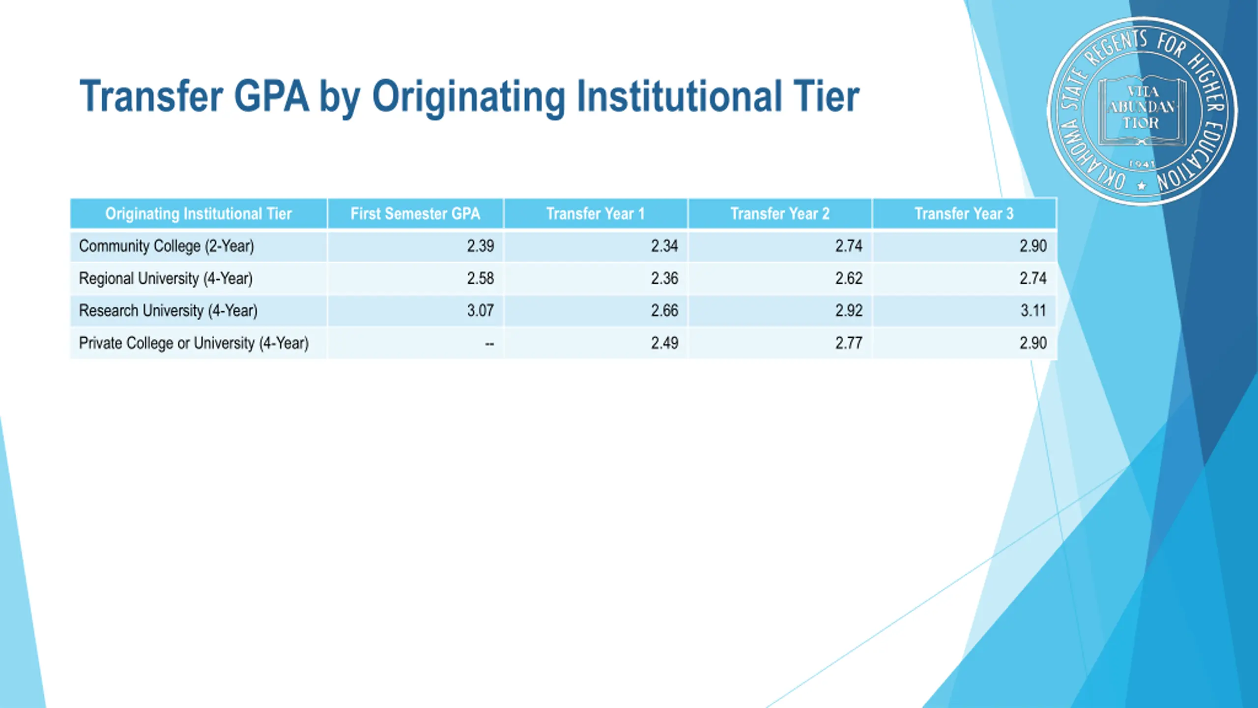 GPA After Transfer What are the success rates of Oklahoma transfer students?