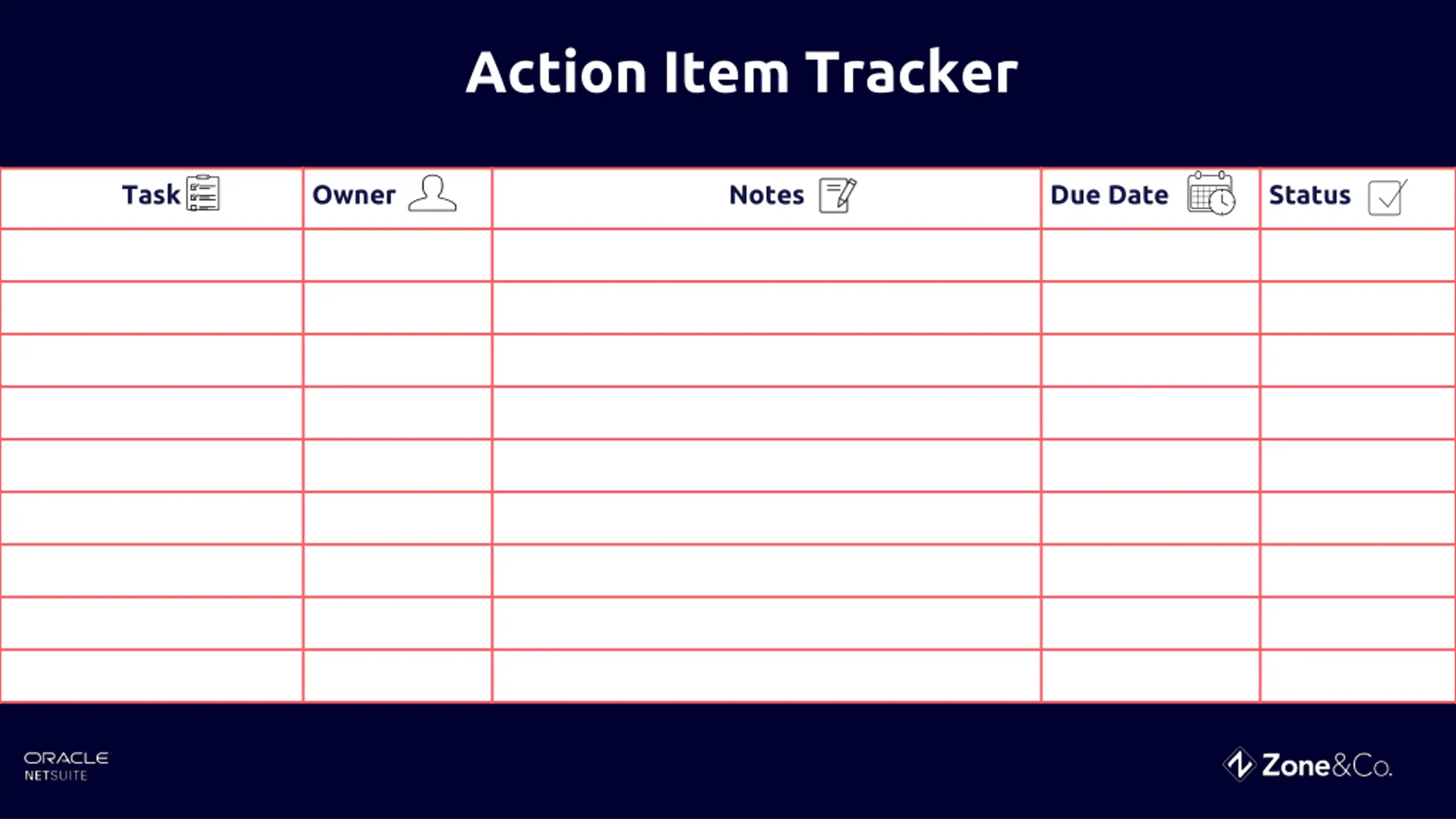 Action Item Tracker Task Owner Notes Due Date Status