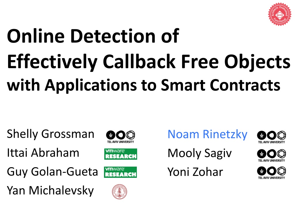 Online Detection of Effectively Callback Free Objects with Applications to Smart Contracts Shelly Grossman Ittai Abraham Guy Golan-Gueta Yan Michalevsky Noam Rinetzky Mooly Sagiv Yoni Zohar