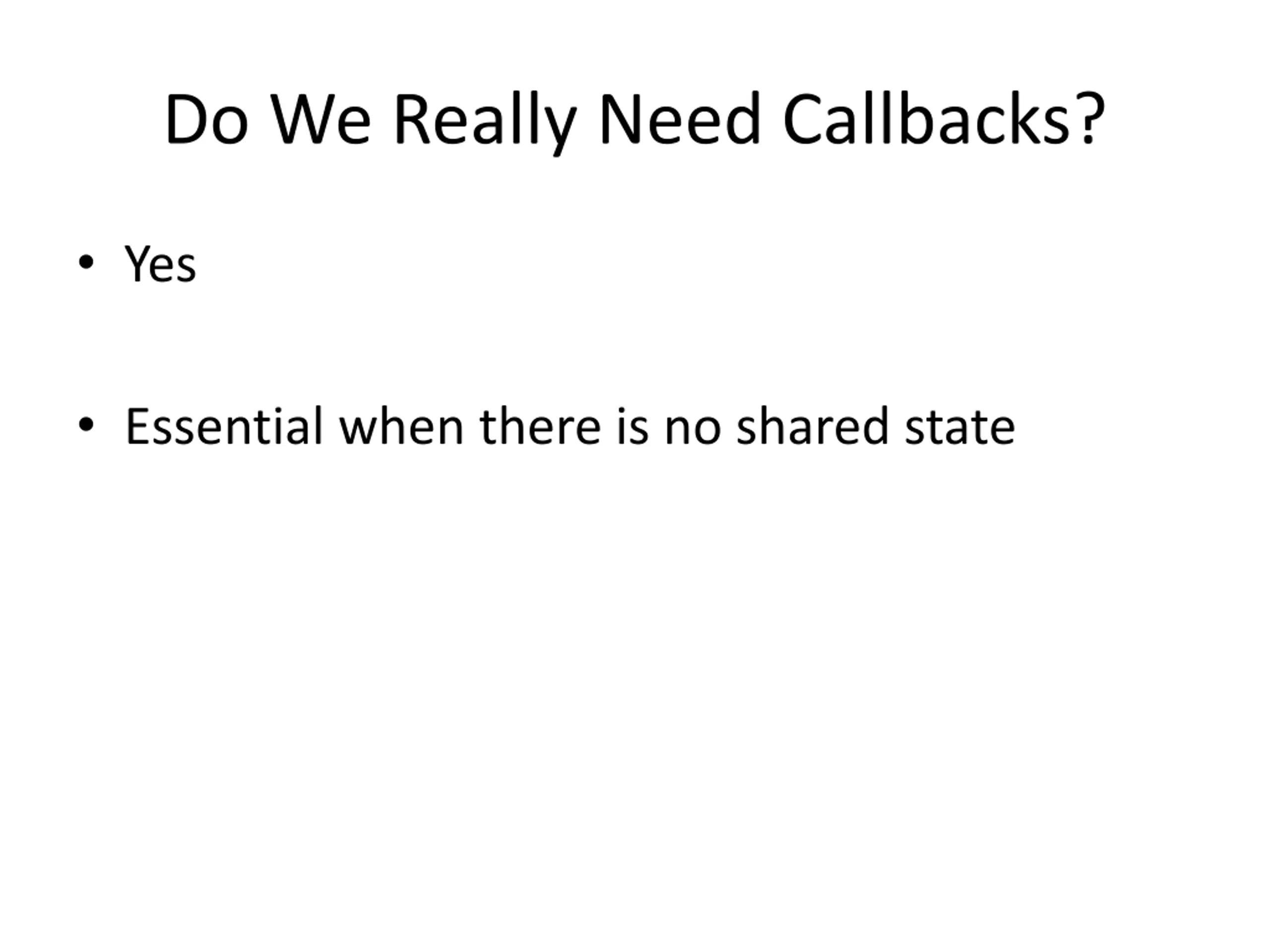 Do We Really Need Callbacks? Yes Essential when there is no shared state