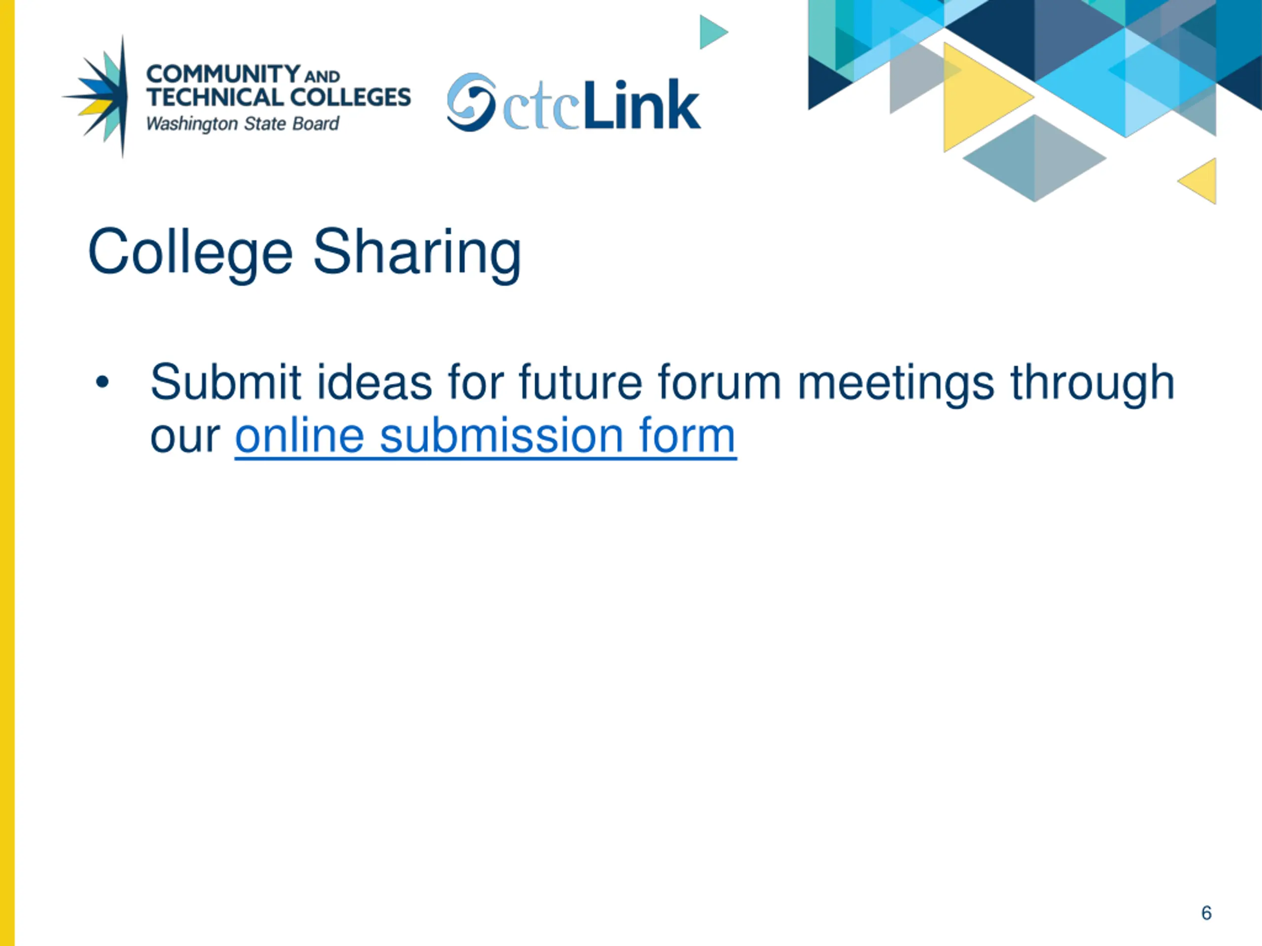 College Sharing Submit ideas for future forum meetings through our online submission form 6