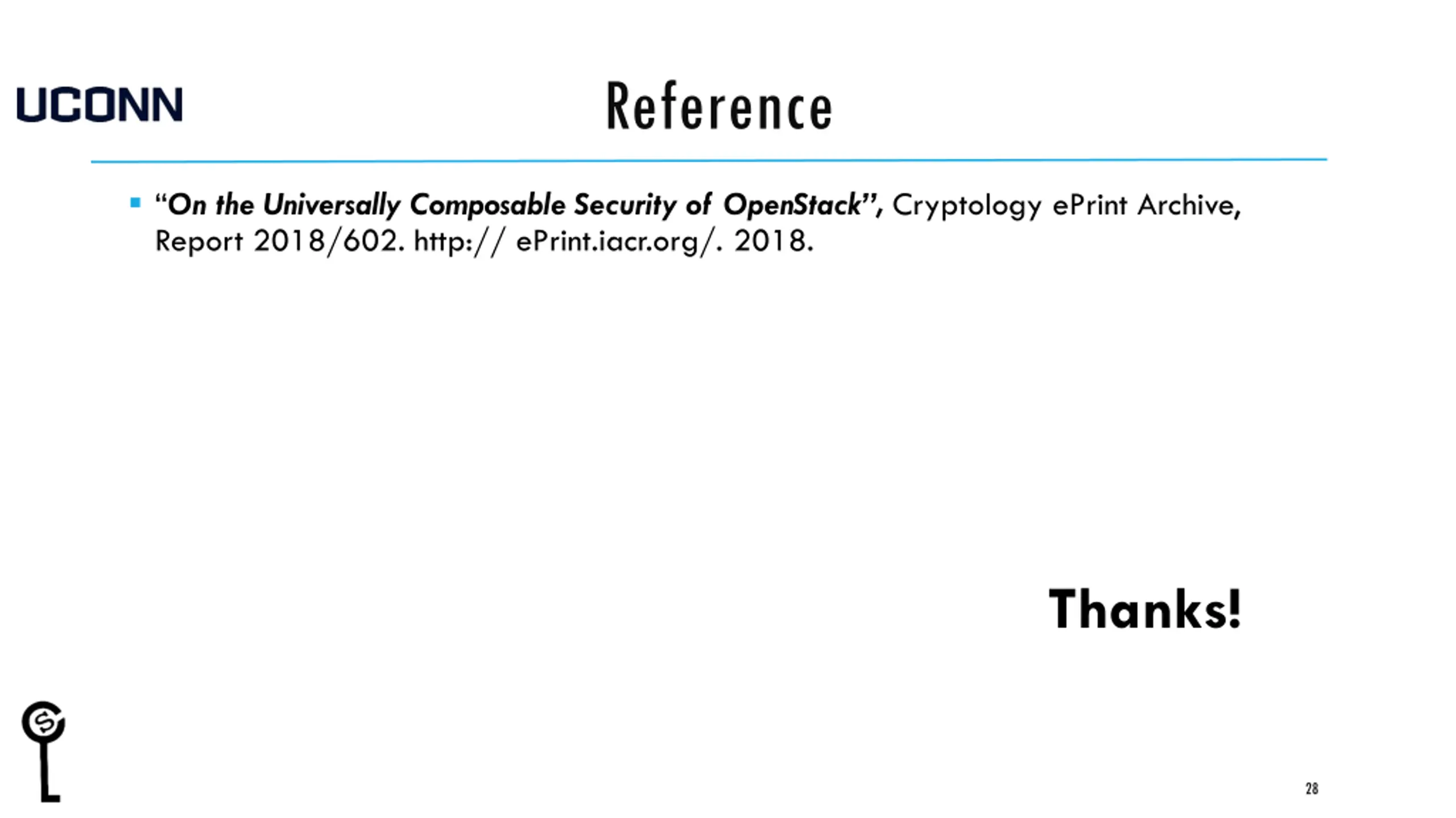 Reference On the Universally Composable Security of OpenStack , Cryptology ePrint Archive, Report 2018/602. http:// ePrint.iacr.org/. 2018. Thanks! 28