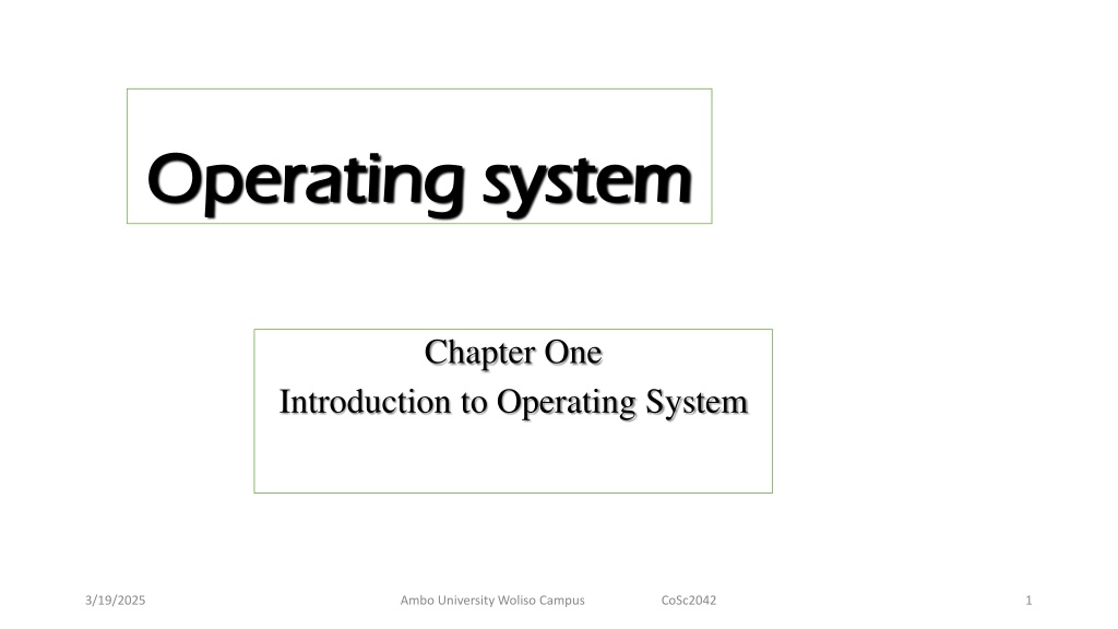 Operating system Operating system Chapter One Introduction to Operating System 3/19/2025 Ambo University Woliso Campus CoSc2042 1