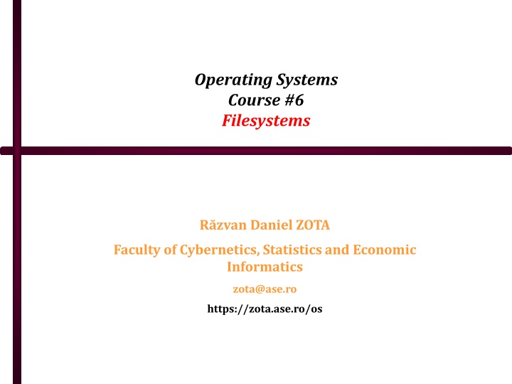Operating Systems Course #6 Filesystems R zvan Daniel ZOTA Faculty of Cybernetics, Statistics and Economic Informatics zota@ase.ro https://zota.ase.ro/os