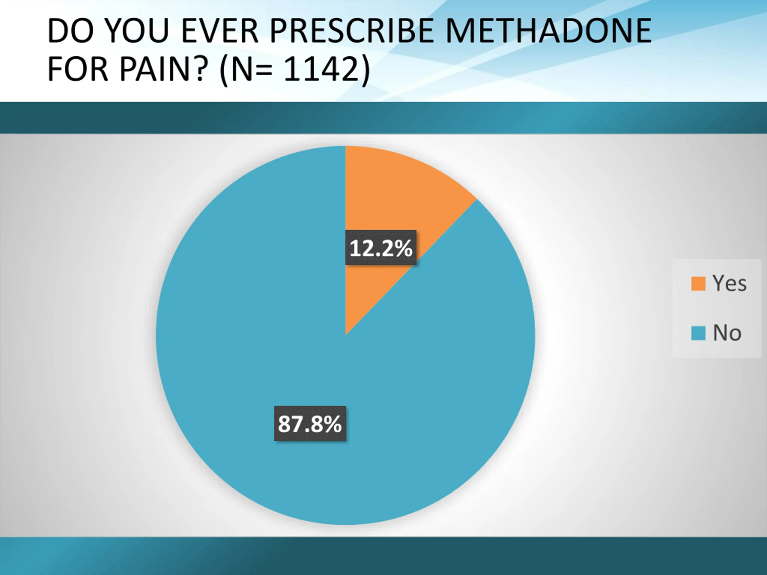 DO YOU EVER PRESCRIBE METHADONE FOR PAIN? (N= 1142) 12.2% Yes No 87.8%