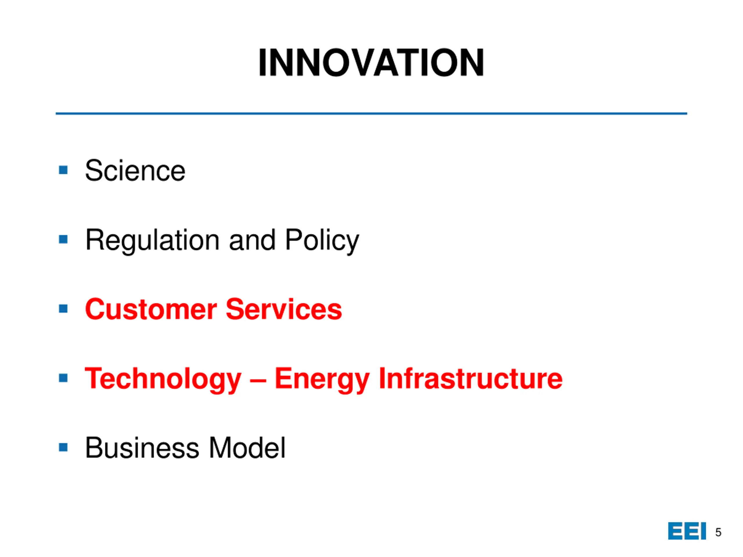 INNOVATION Science Regulation and Policy Customer Services Technology Energy Infrastructure Business Model 5