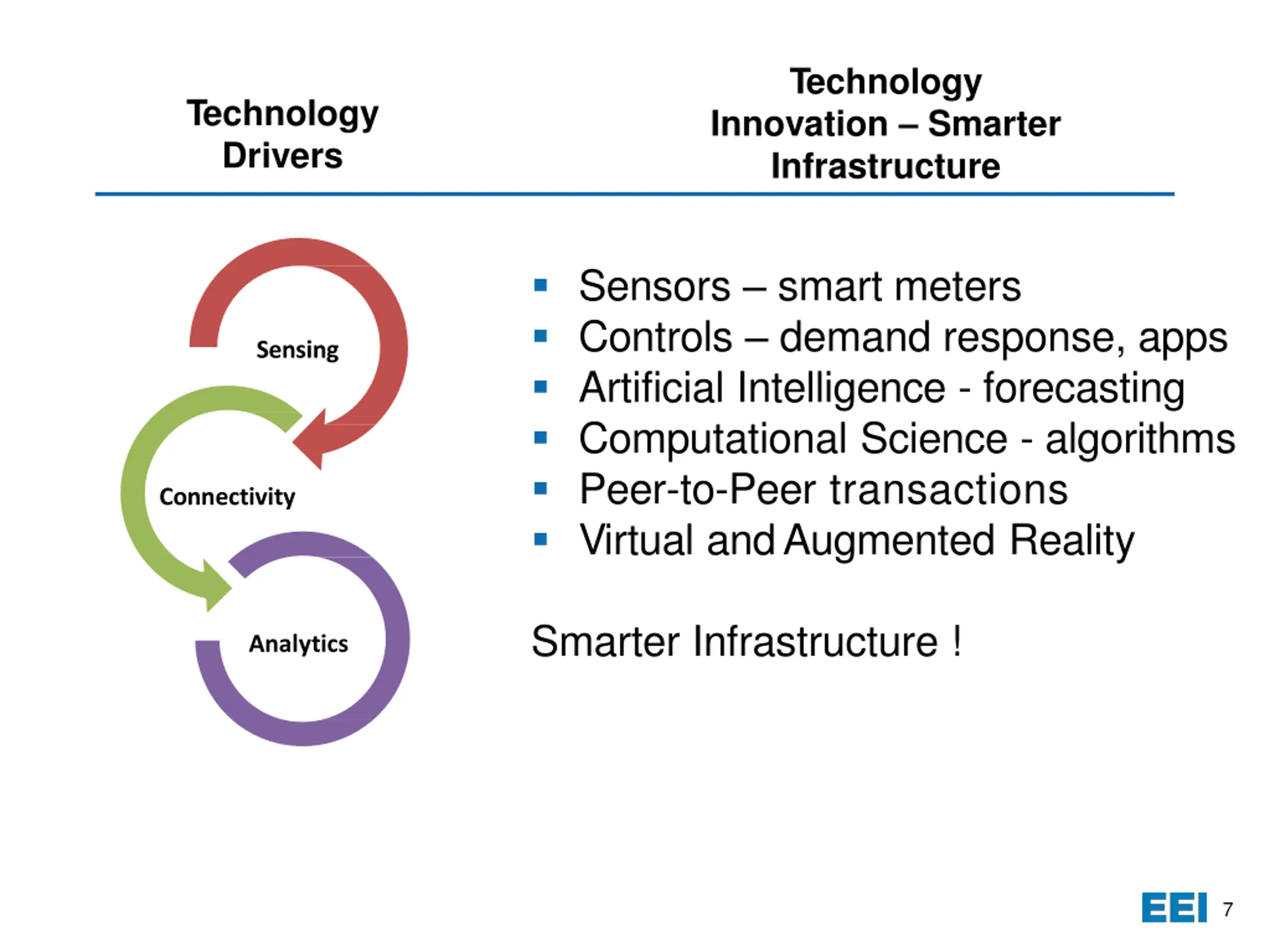 Individualized Customer Services Choice, Control, Convenience, Cost PRESENT PAST Source: TheEdison Foundation Institute for ElectricInnovation, Thought Leaders Speak Out: KeyTrends Driving Change in the Electric PowerIndustry, December2015 6