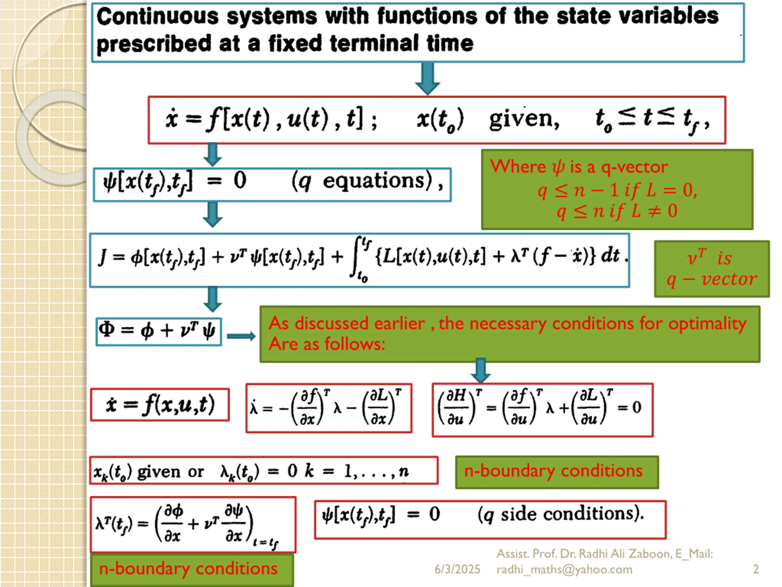 Continuous systems; functions of the state variables specified at an unspecified terminal time, including minimum-time problems. ?? ?? ? ?????? The differential is taking into account differential changes in terminal time ?? as: + Assist. Prof. Dr. Radhi Ali Zaboon, E_Mail: radhi_maths@yahoo.com 6/3/2025 6