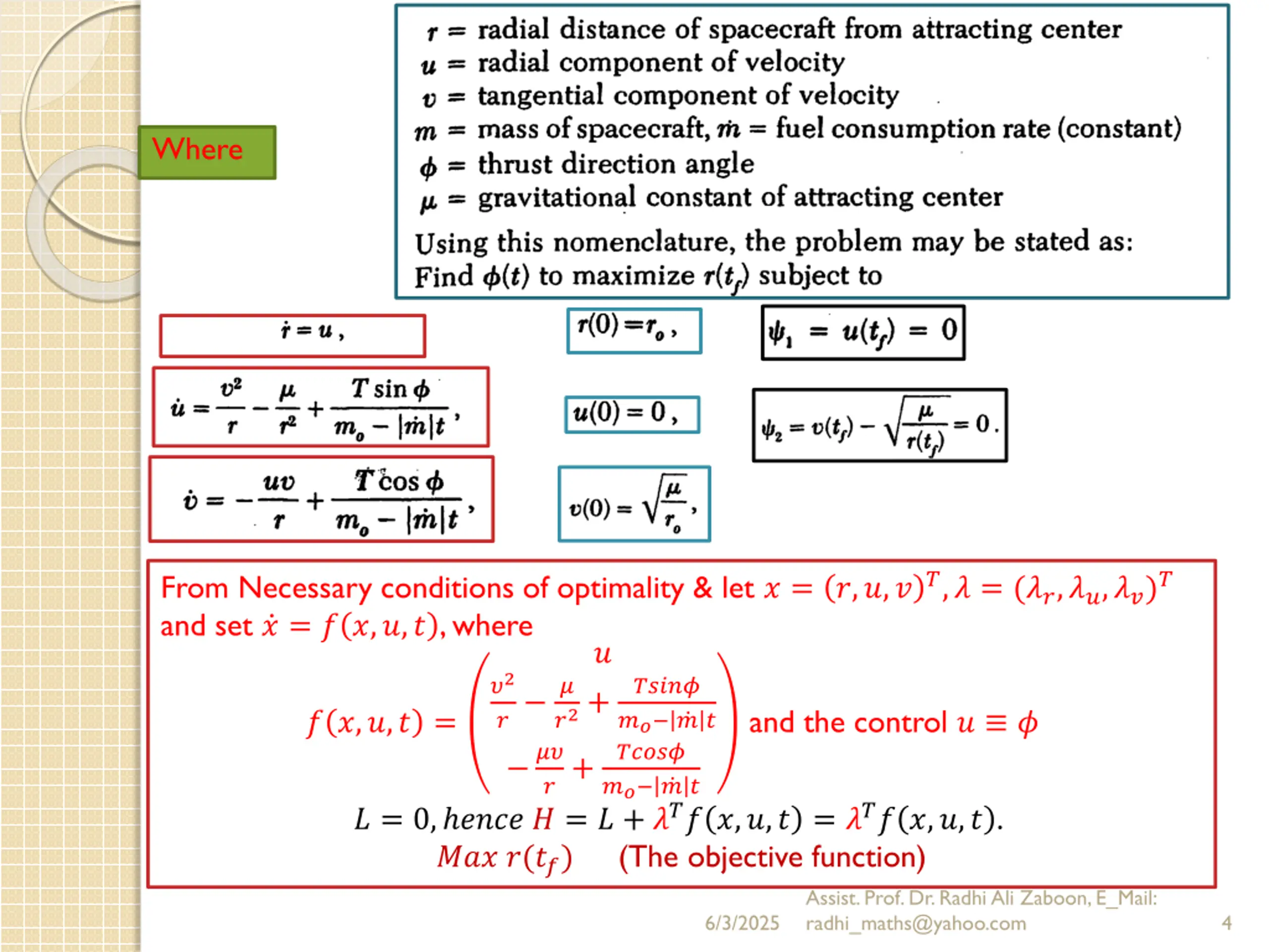 Example: Maximum radius Orbit Transfer in a given Time Assist. Prof. Dr. Radhi Ali Zaboon, E_Mail: radhi_maths@yahoo.com 6/3/2025 3