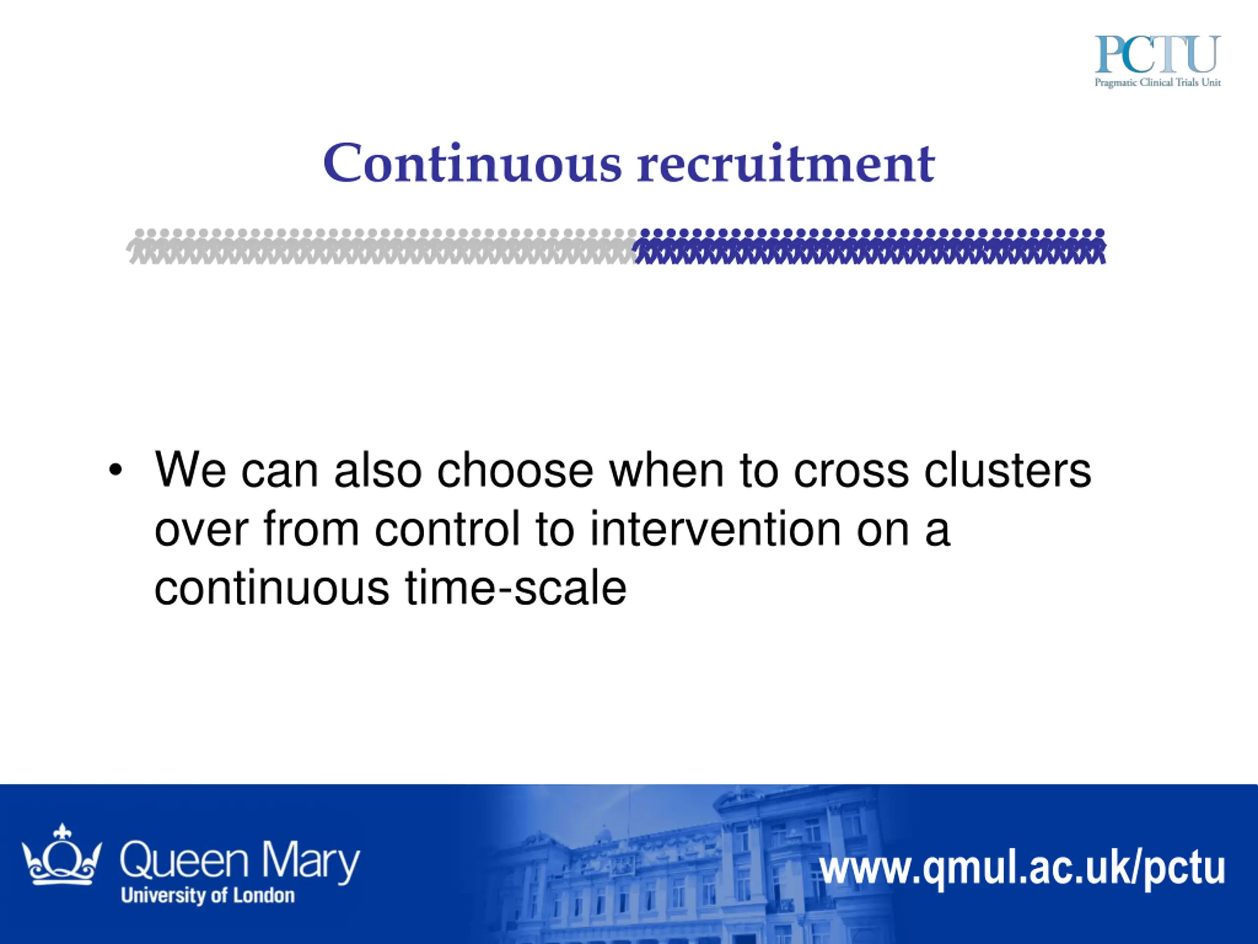 Continuous recruitment When recruitment is continuous, cross-over times may have little real significance, at least in clusters which do not cross over www.qmul.ac.uk/pctu