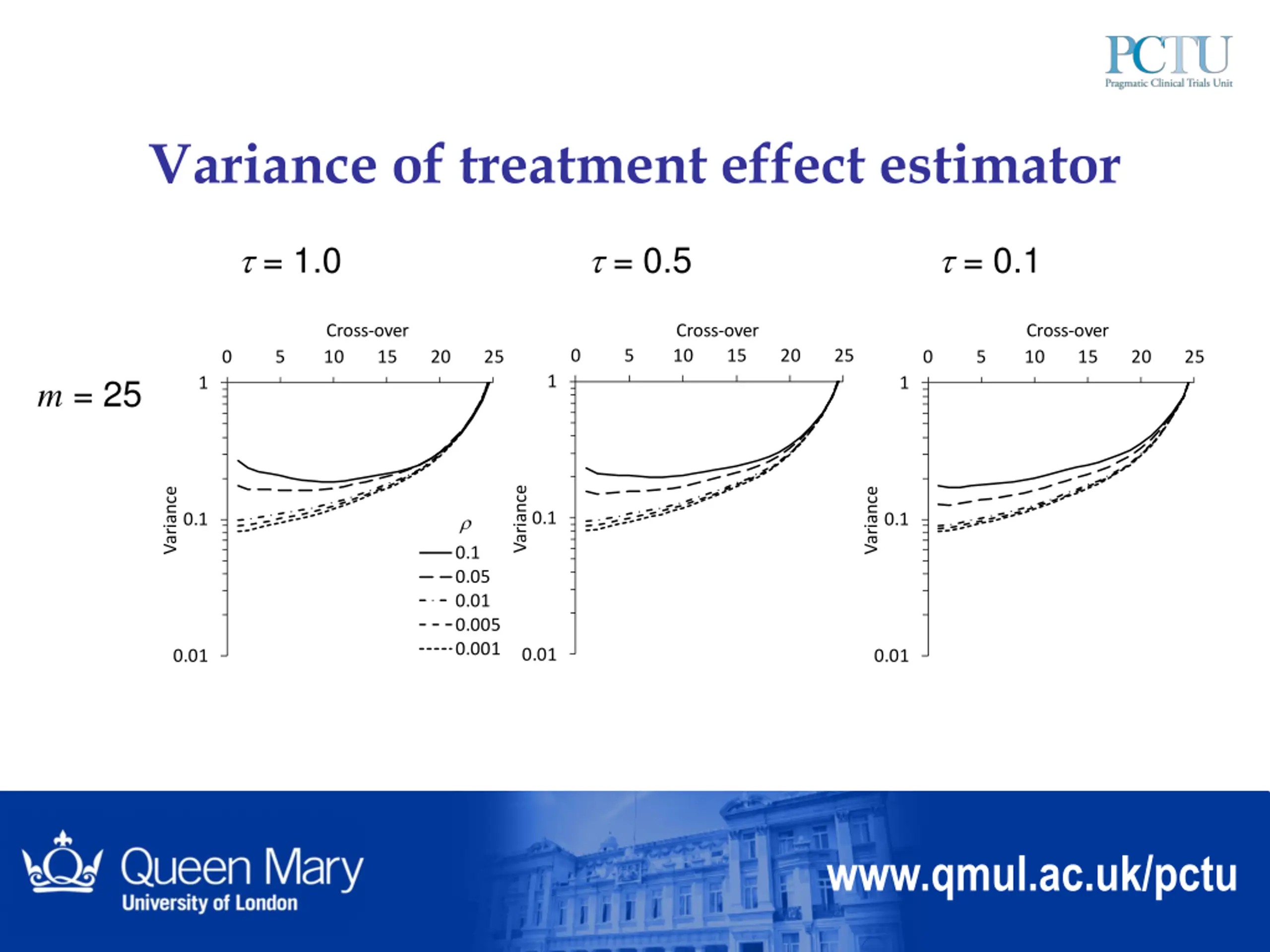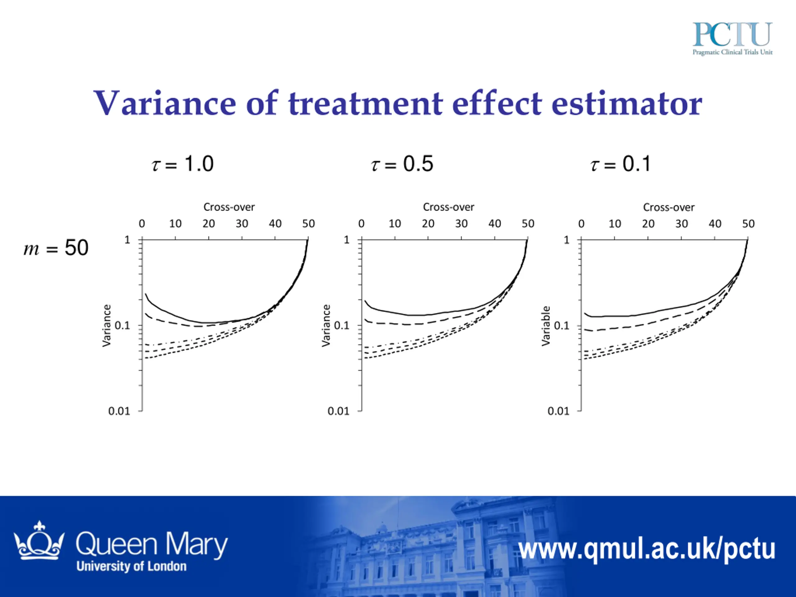 Variance of treatment effect estimator = 1.0 = 0.5 = 0.1 Cross-over Cross-over Cross-over 0 5 10 15 20 25 0 5 10 15 20 25 0 5 10 15 20 25 1 m = 25 1 1 Variance Variance Variance 0.1 r 0.1 0.1 0.1 0.05 0.01 0.005 0.001 0.01 0.01 0.01 www.qmul.ac.uk/pctu