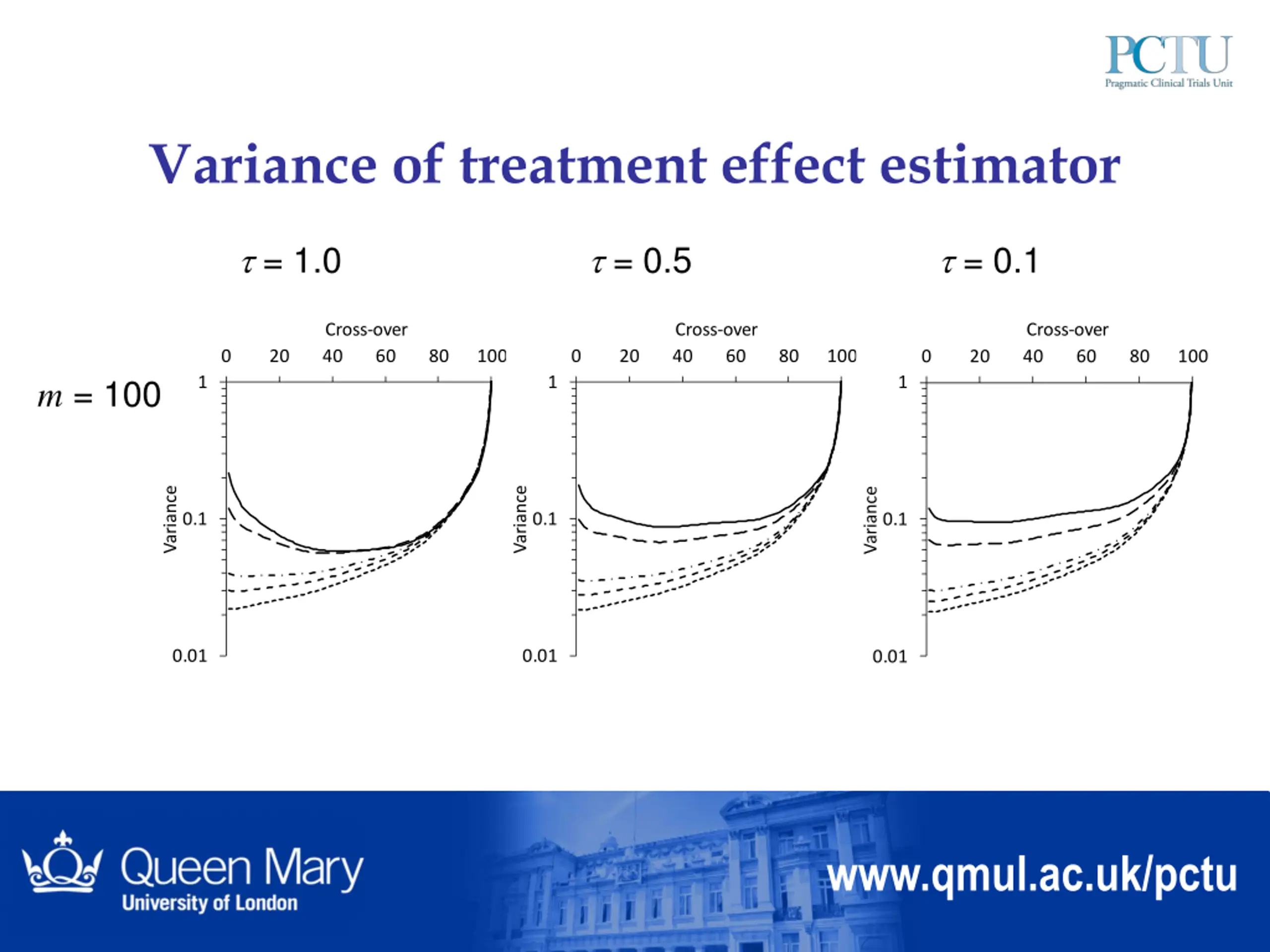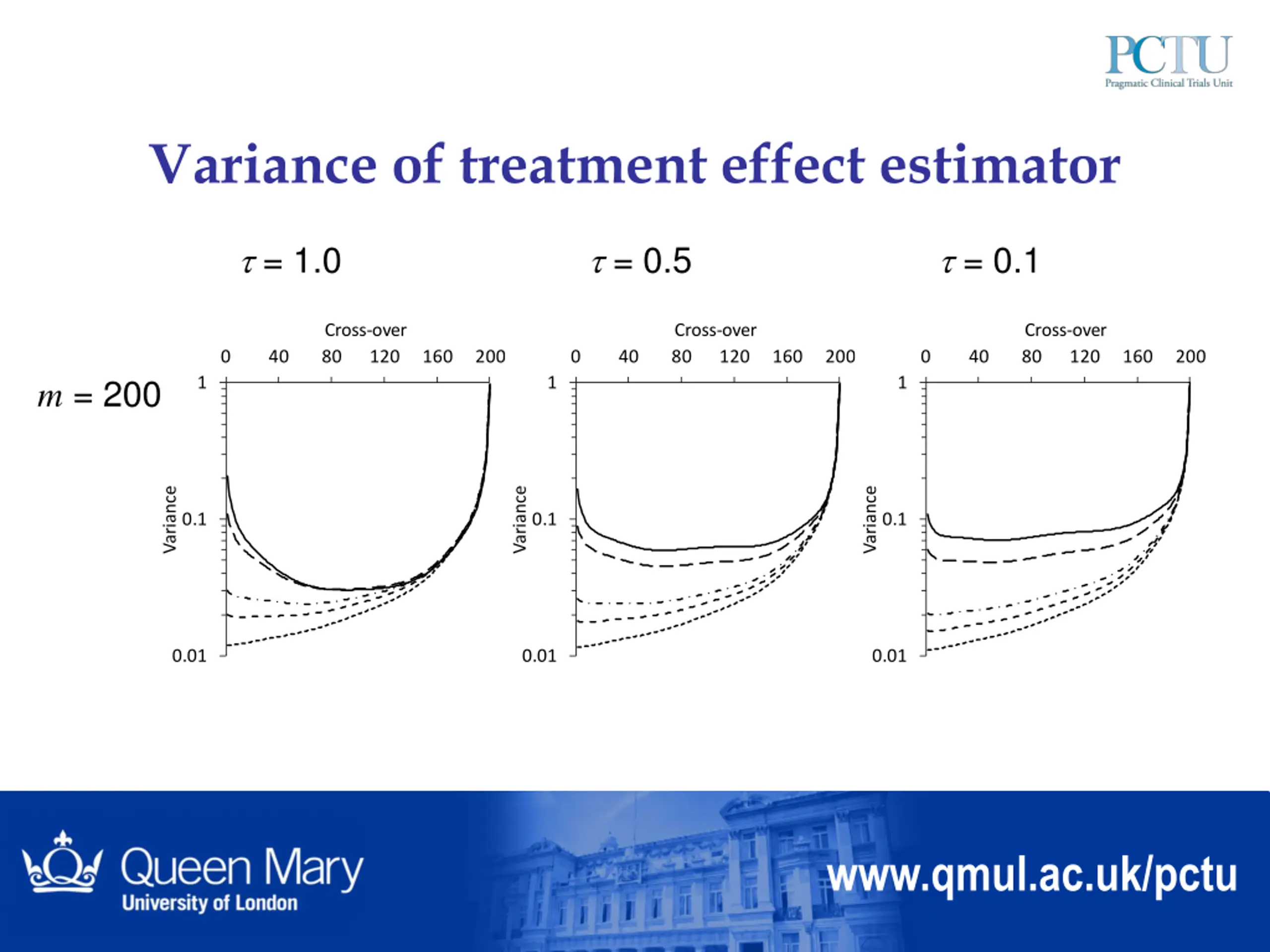 Variance of treatment effect estimator = 1.0 = 0.5 = 0.1 Cross-over Cross-over Cross-over 0 20 40 60 80 100 0 20 40 60 80 100 0 20 40 60 80 100 m = 100 1 1 1 Variance Variance Variance 0.1 0.1 0.1 0.01 0.01 0.01 www.qmul.ac.uk/pctu