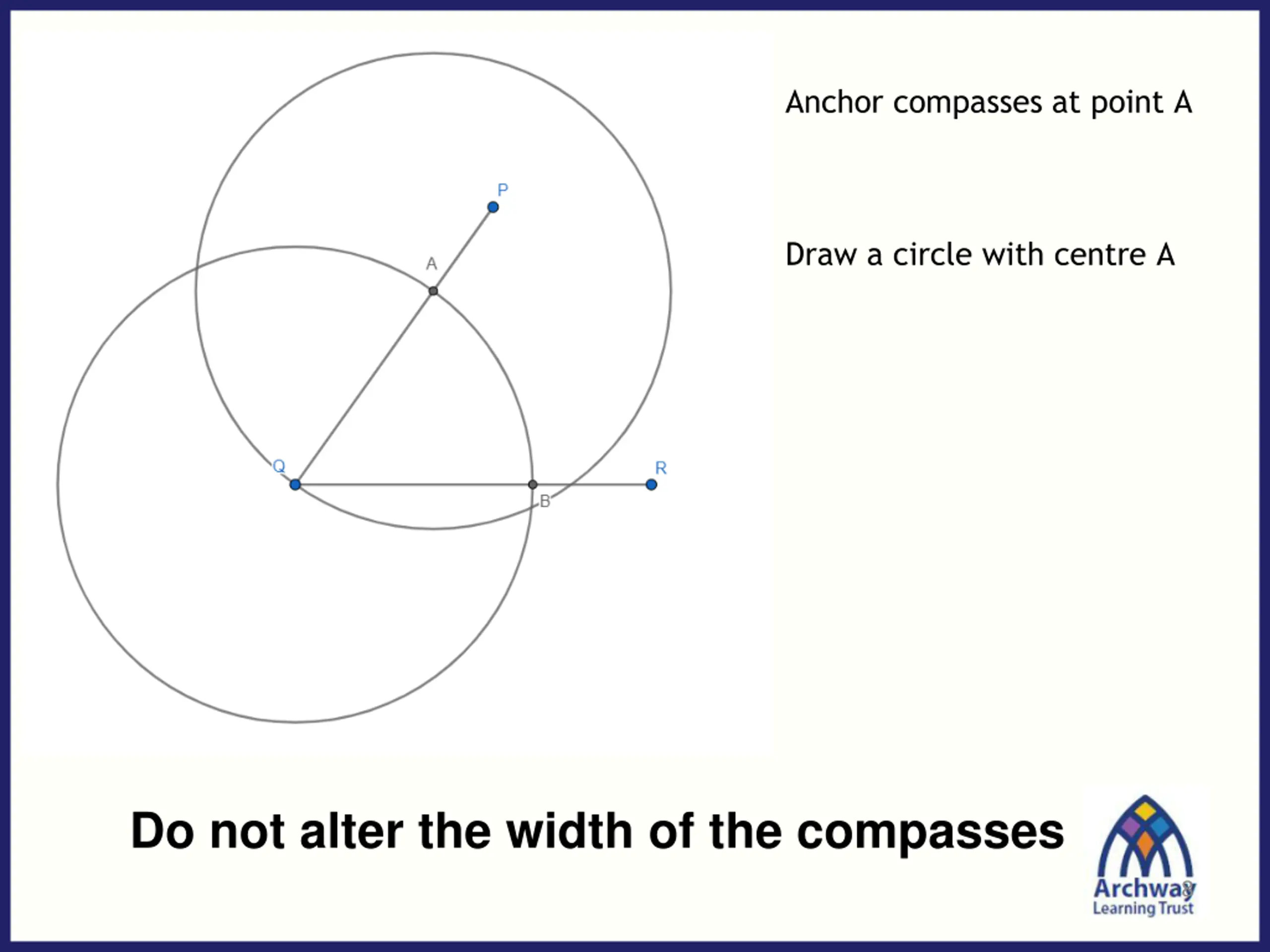 Anchor compasses at the vertex of the angle (point Q) Draw a circle with radius less than QP and QR Label the points where the circle intersects QP and QR A and B respectively Do not alter the width of the compasses 7