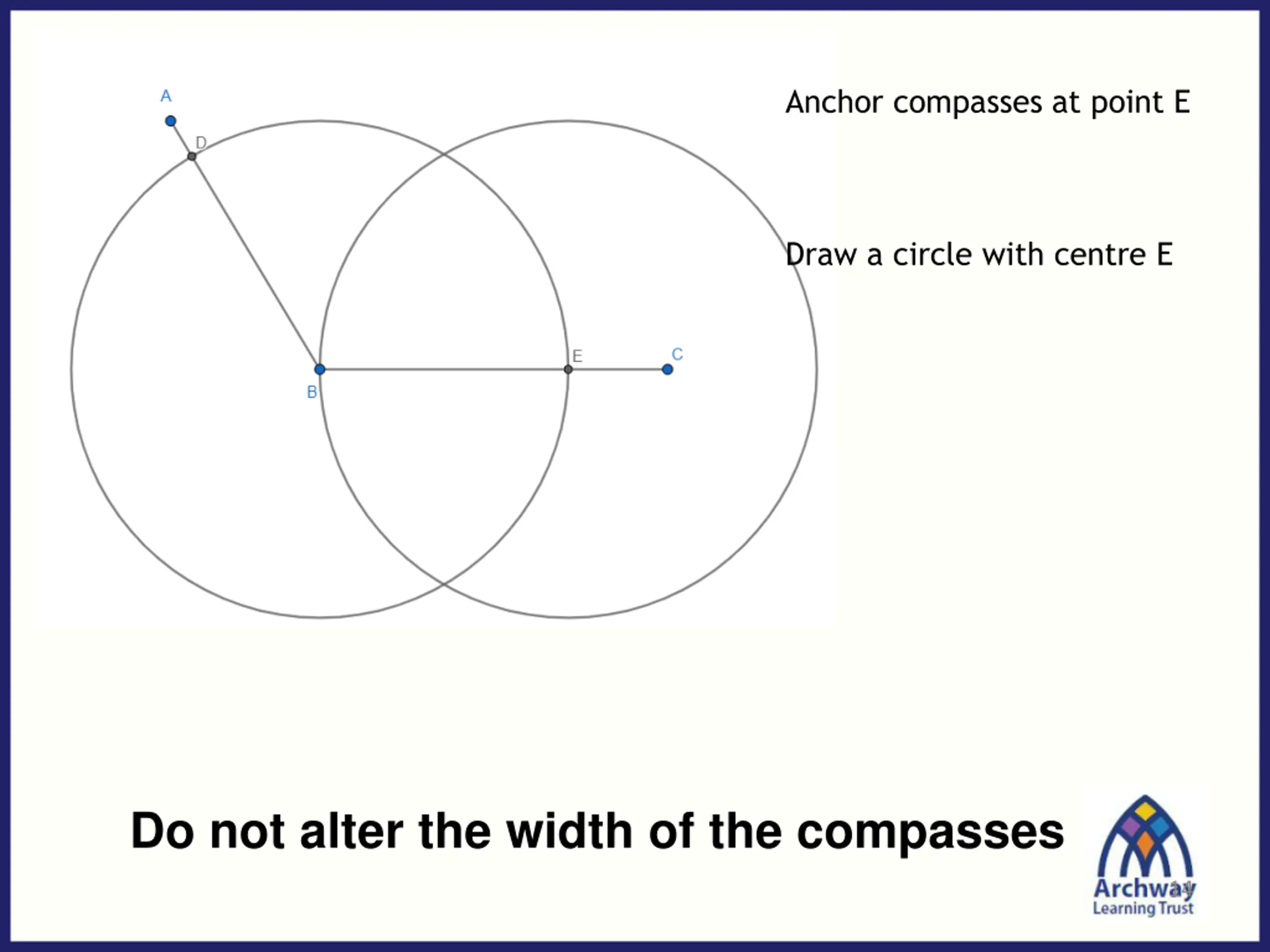 Anchor compasses at point E Draw a circle with centre E Do not alter the width of the compasses 14