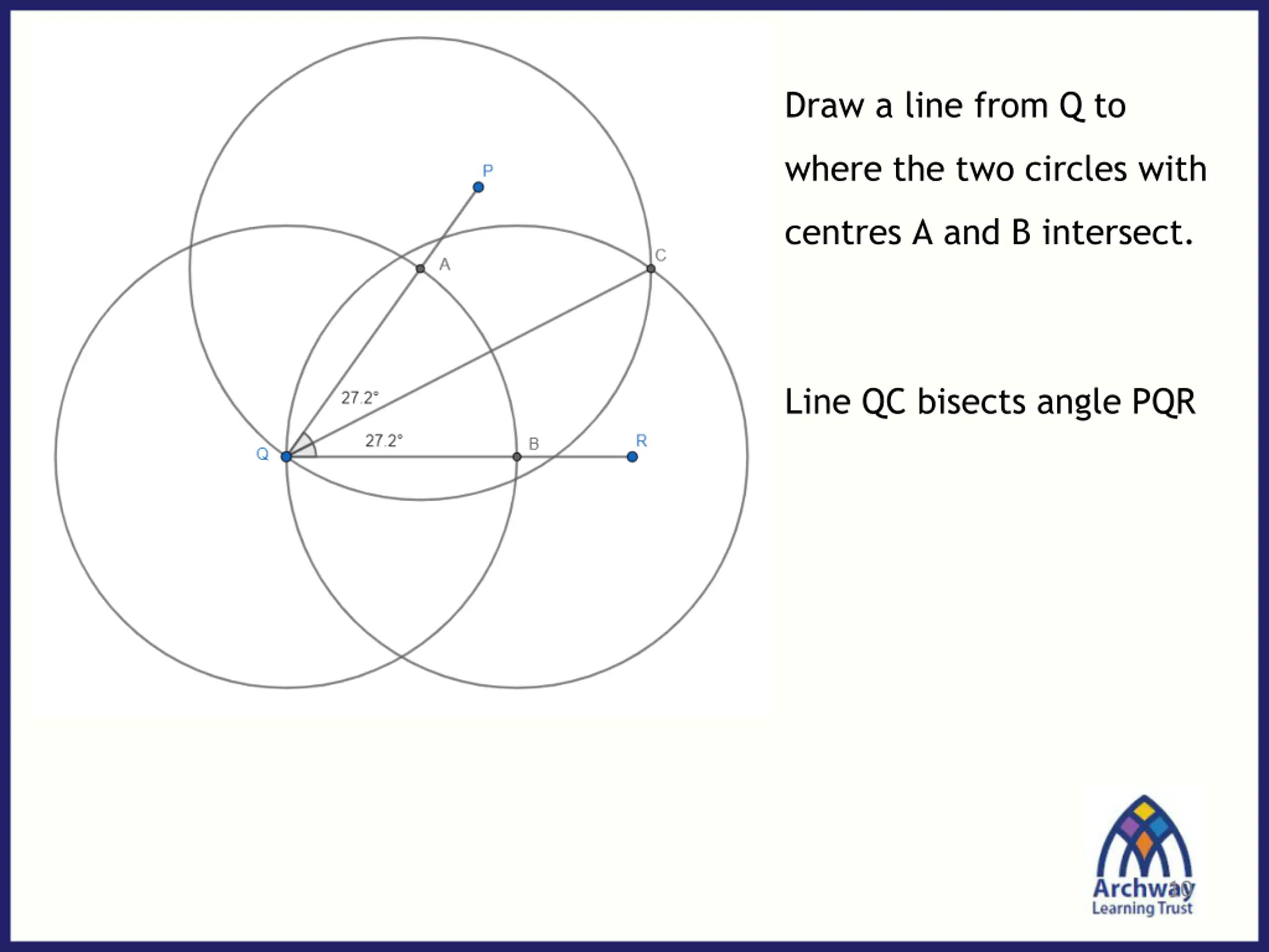 Draw a line from Q to where the two circles with centres A and B intersect. Line QC bisects angle PQR 10
