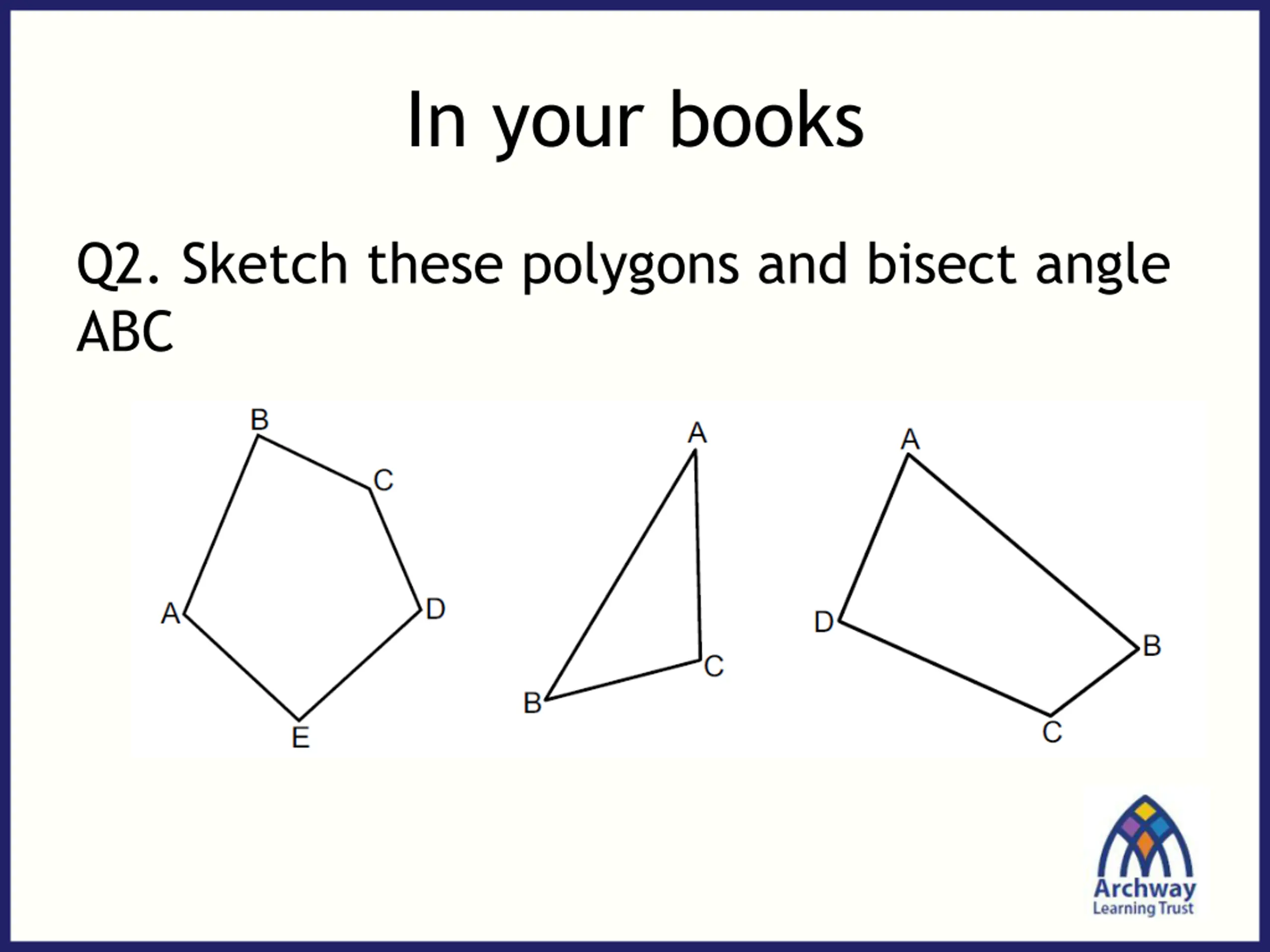 In your books Q2. Sketch these polygons and bisect angle ABC
