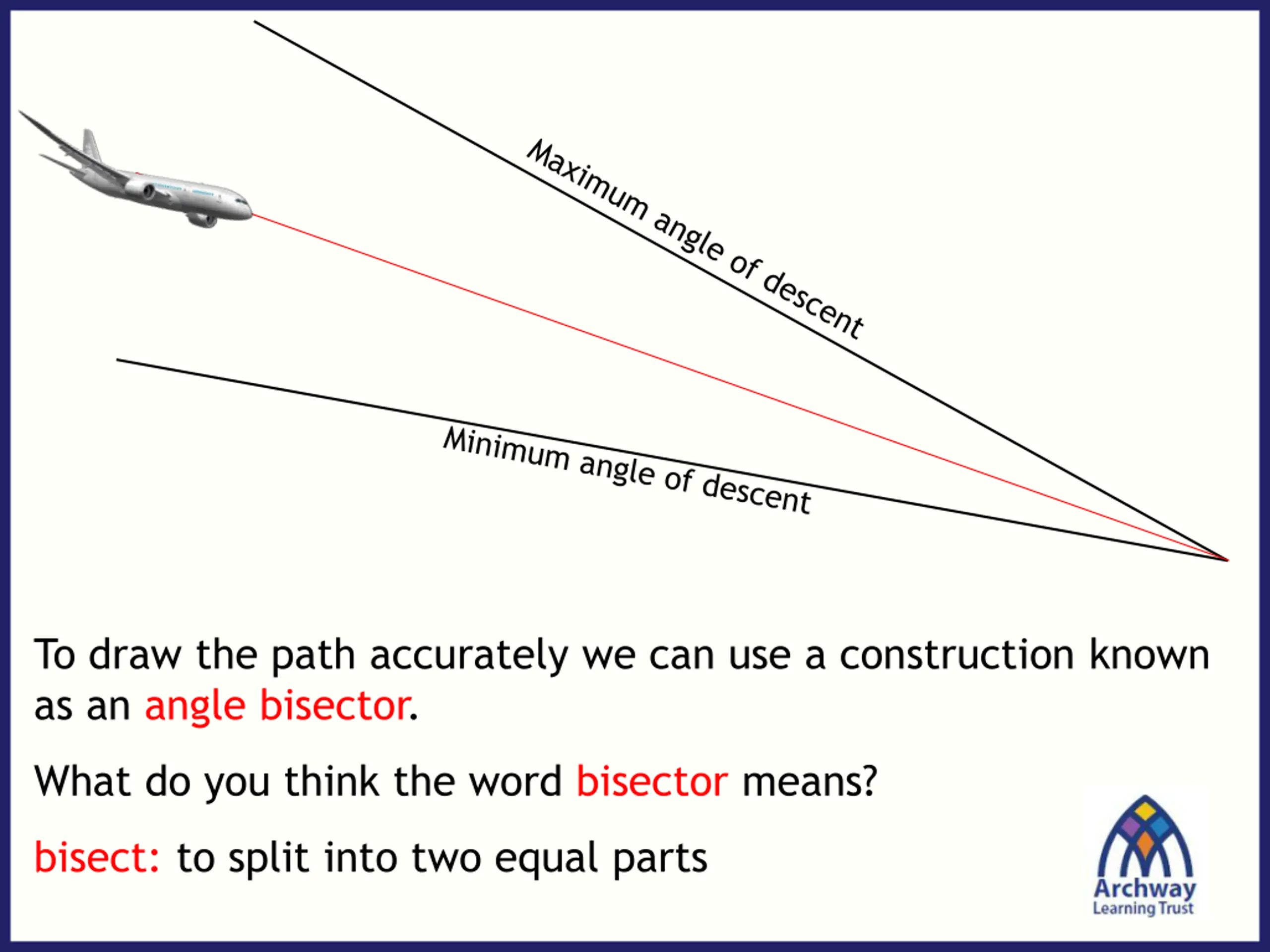 To draw the path accurately we can use a construction known as an angle bisector. What do you think the word bisector means? bisect: to split into two equal parts