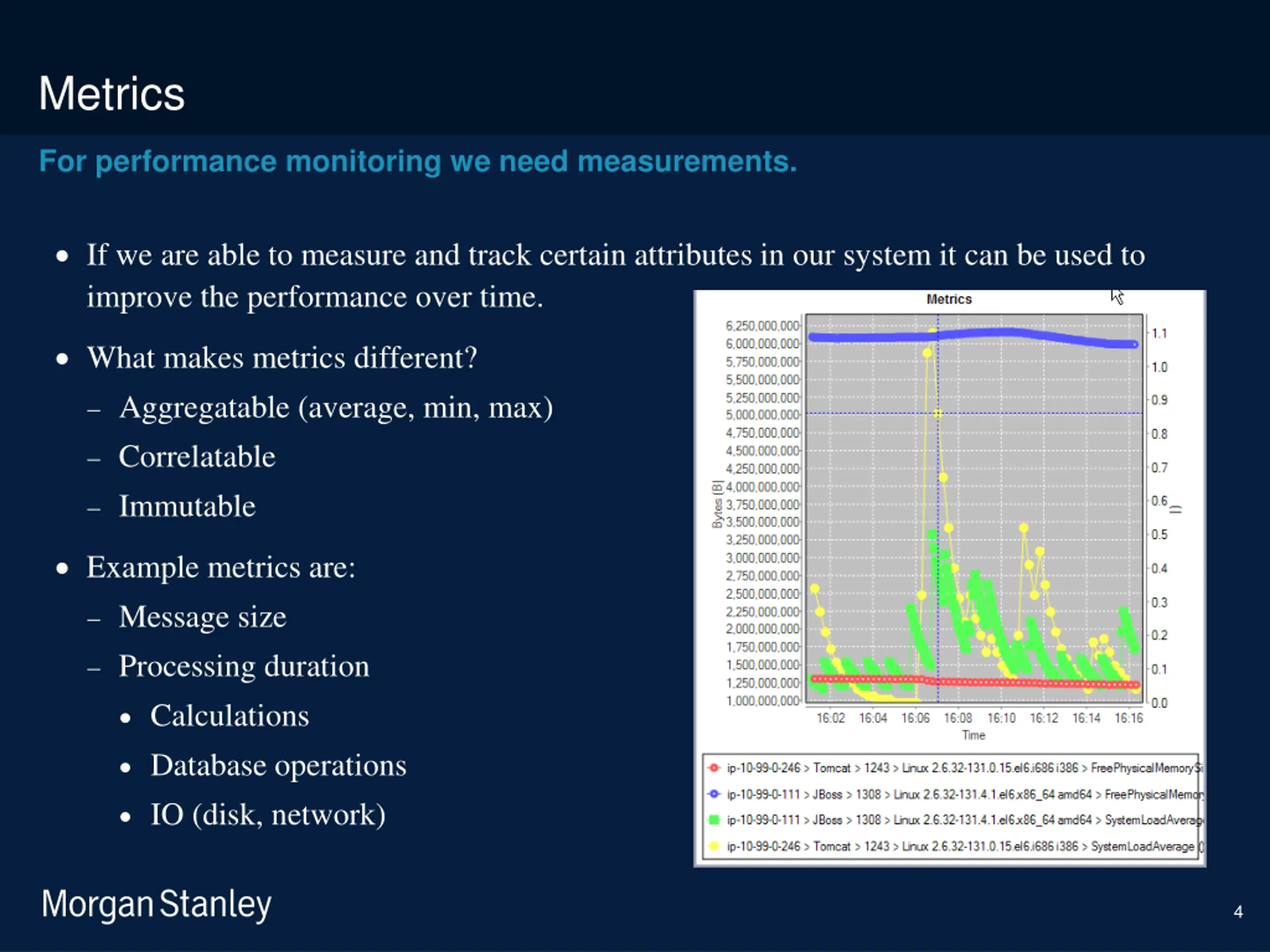 prototype template (5428278)\print library_new_final.ppt 6/5/2025 Metrics For performance monitoring we need measurements. If we are able to measure and track certain attributes in our system it can be used to improve the performance over time. What makes metrics different? Aggregatable (average, min, max) Correlatable Immutable Example metrics are: Message size Processing duration Calculations Database operations IO (disk, network) 4