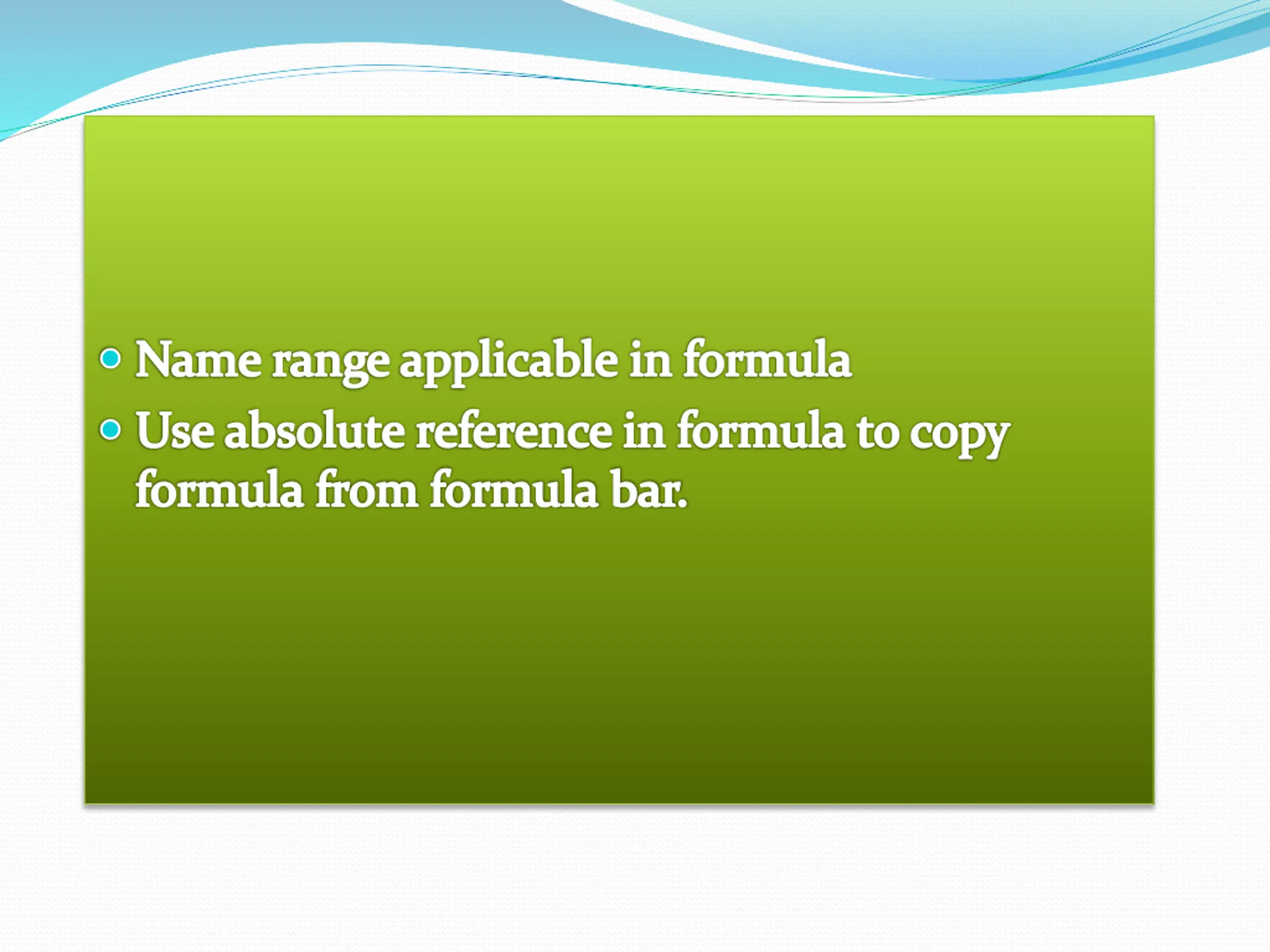 Name range applicable in formula Use absolute reference in formula to copy formula from formula bar.