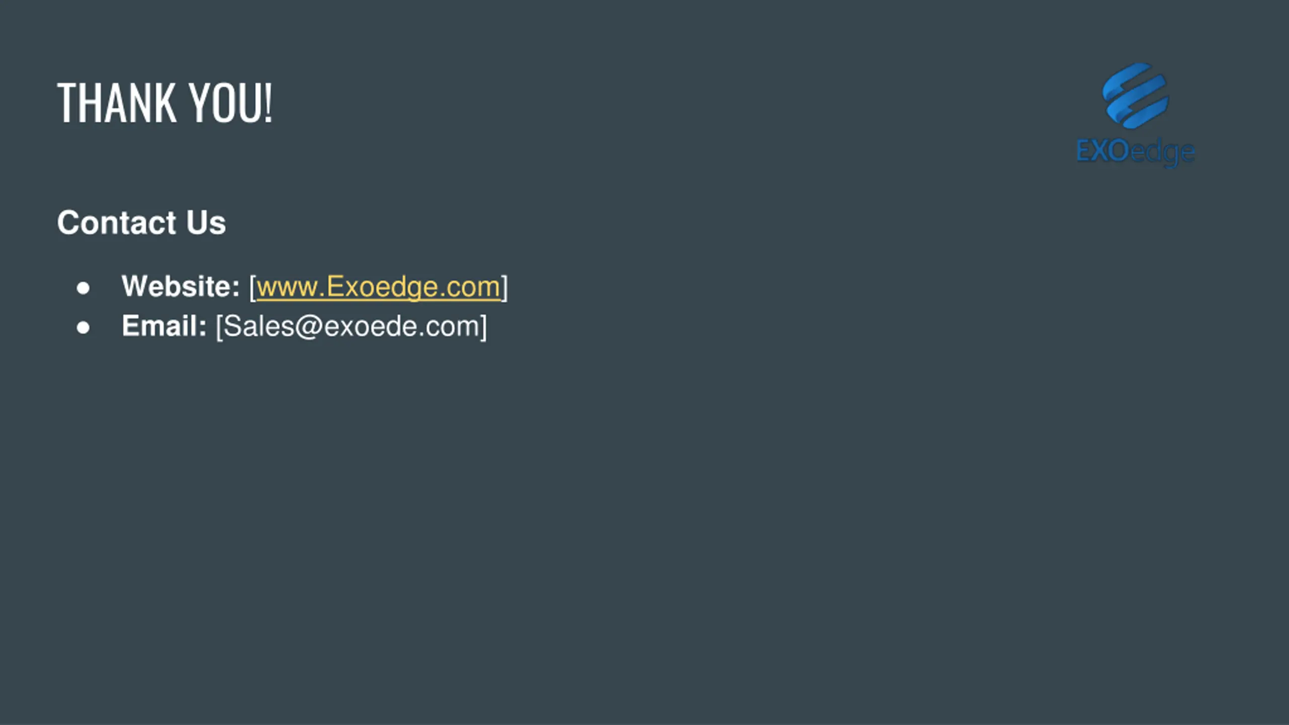 THANK YOU! Contact Us Website: [www.Exoedge.com] Email: [Sales@exoede.com]