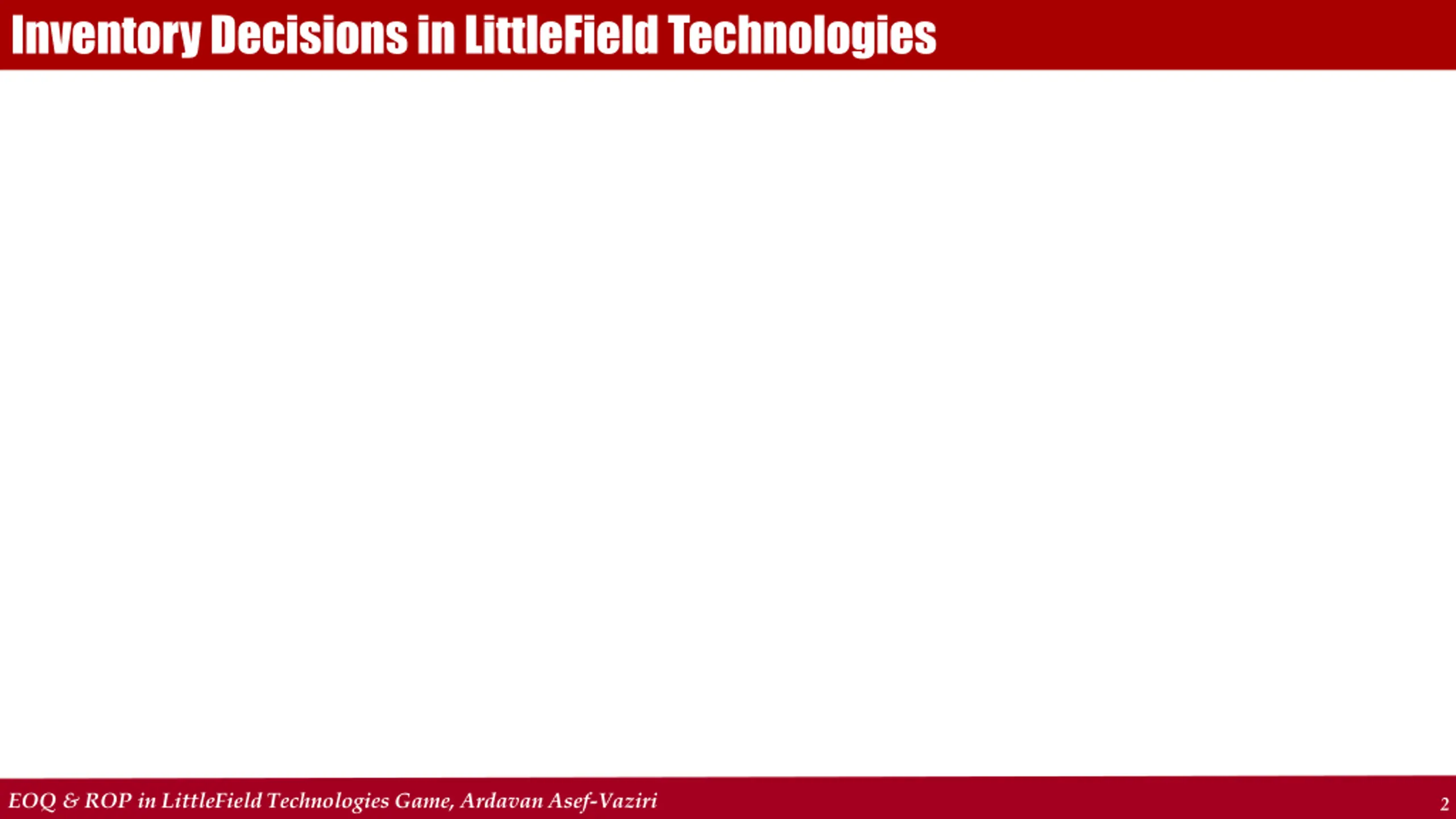 Inventory Decisions in LittleField Technologies EOQ & ROP in LittleField Technologies Game, Ardavan Asef-Vaziri 2