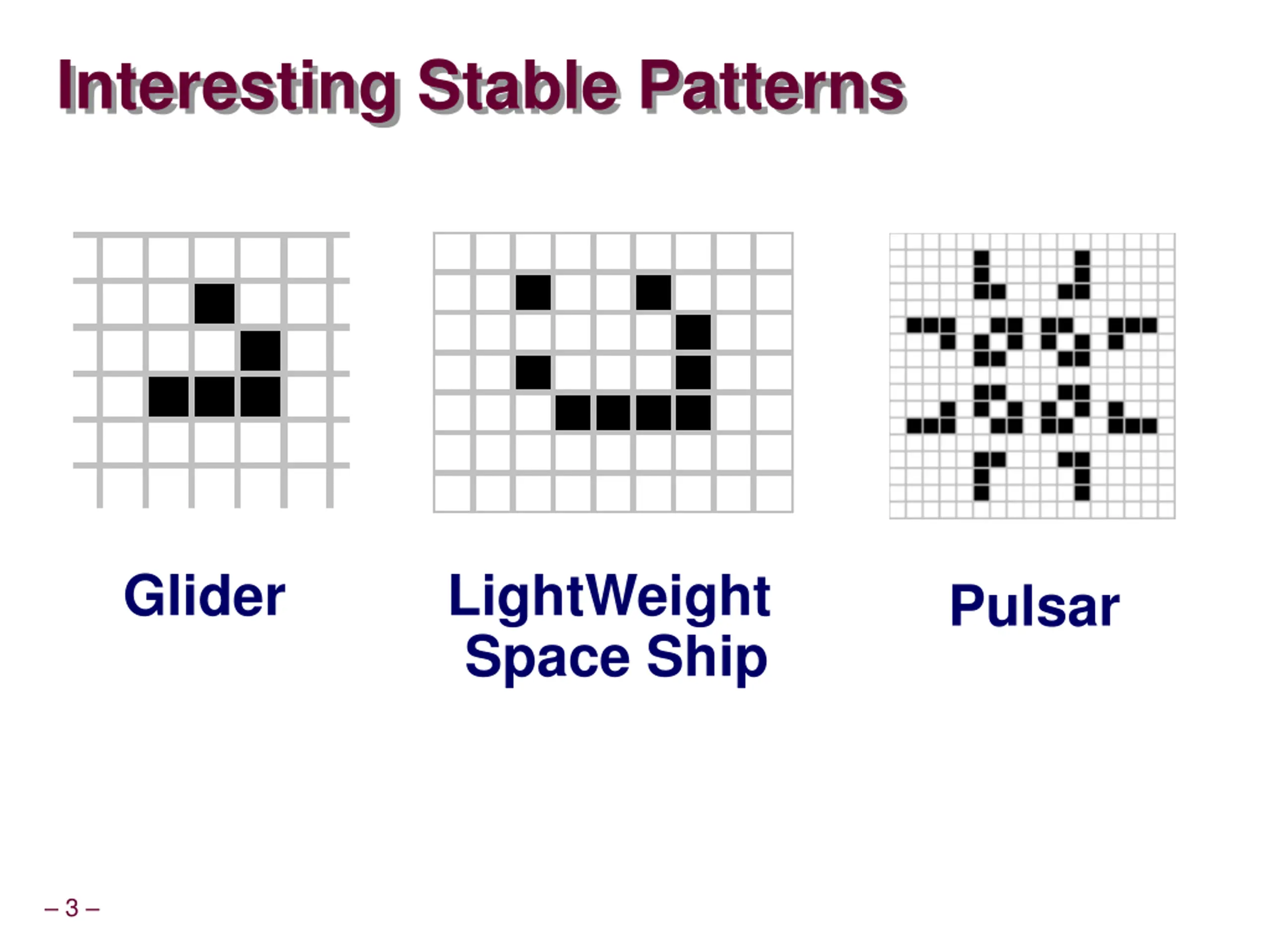 Interesting Stable Patterns Glider LightWeight Space Ship Pulsar 3