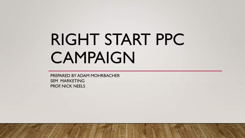 RIGHT START PPC CAMPAIGN PREPARED BY ADAM MOHRBACHER SEM MARKETING PROF. NICK NEELS