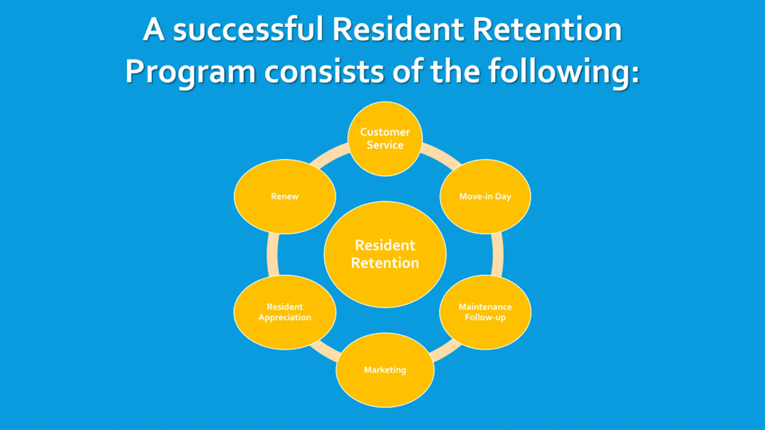 A successful Resident Retention Program consists of the following: Customer Service Renew Move-in Day Resident Retention Resident Appreciation Maintenance Follow-up Marketing