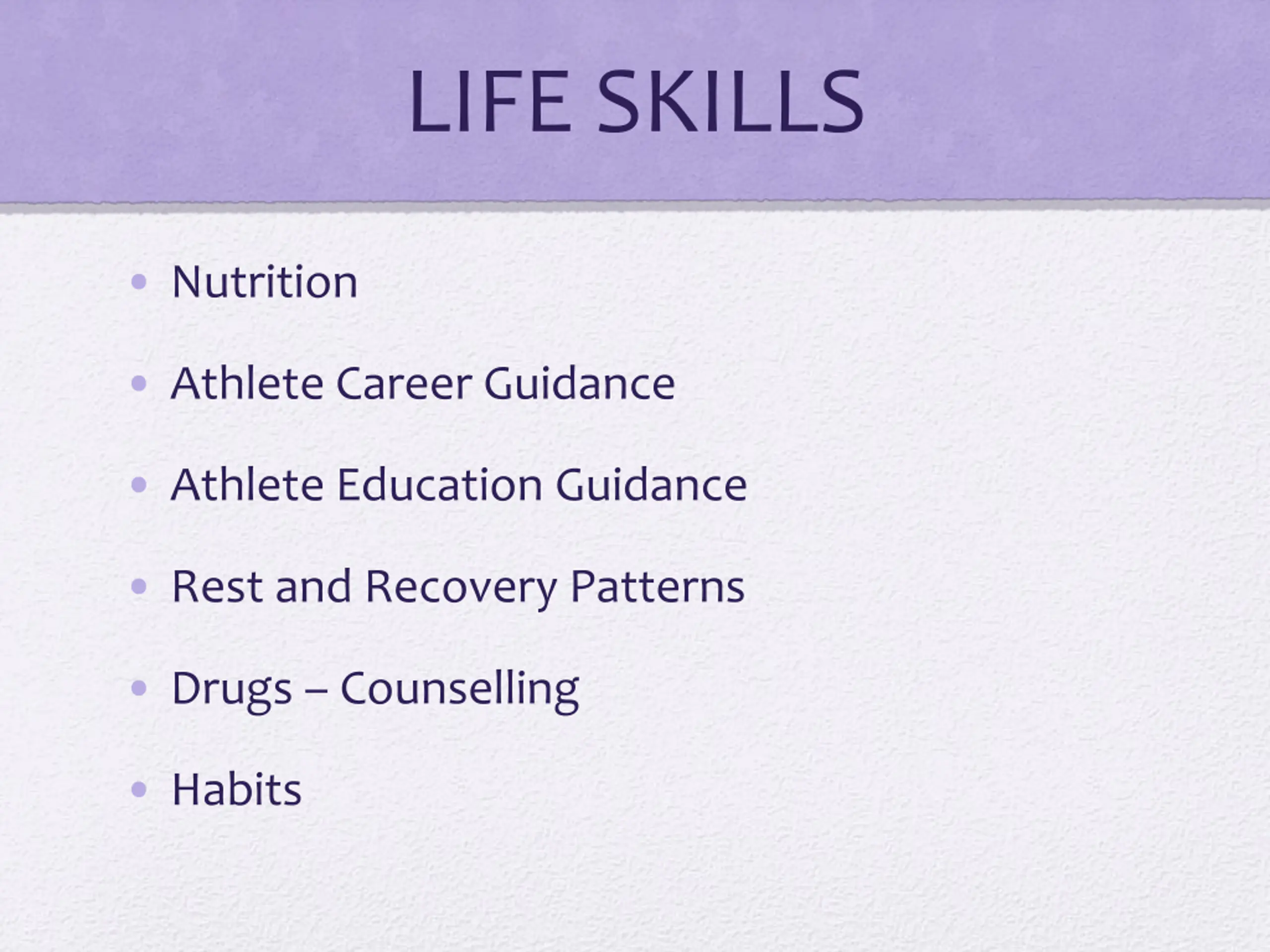 LIFE SKILLS Nutrition Athlete Career Guidance Athlete Education Guidance Rest and Recovery Patterns Drugs Counselling Habits