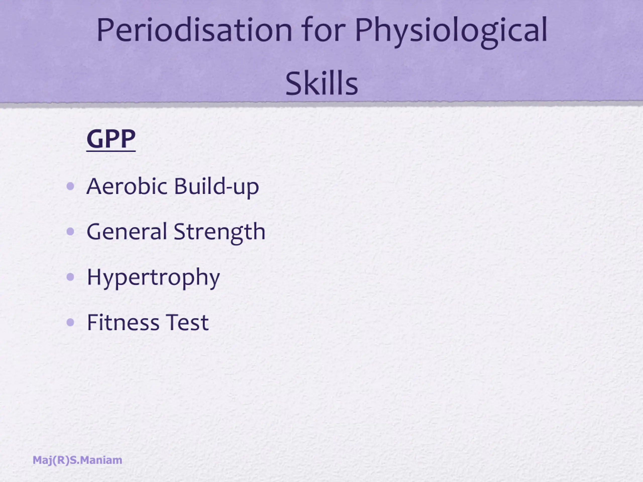 Periodisation for Physiological Skills GPP Aerobic Build-up General Strength Hypertrophy Fitness Test Maj(R)S.Maniam